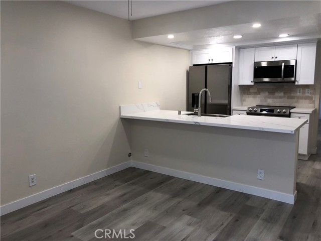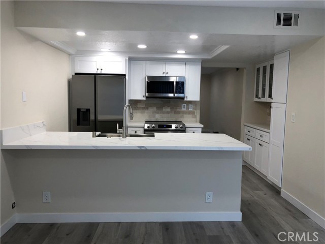 Walk to Main Street from this beautifully remodeled 2 bedroom 1 bathroom ground level condo in the Las Brisas gated community. This 2 bedroom 1 bathroom has been completely remodeled. A beautiful remodeled kitchen with quartz counter top on white cabinets with stainless steel appliances. Additional dry bar area for extra storage and counter space. Deep counter top for dining and an additional dining area. Bathroom has been remodeled with dual sinks and quartz countertops. Spacious bedrooms with ceiling fans and mirrored closet doors. Washer and dryer in unit with additional linen closet for storage. Big private backyard for entertaining. Recess lighting, wood planked flooring throughout, and fans in each room. The community has clubhouse, pool, and BBQ. Two blocks from the ocean. Great location! Owner is requiring renter's insurance during tenancy.