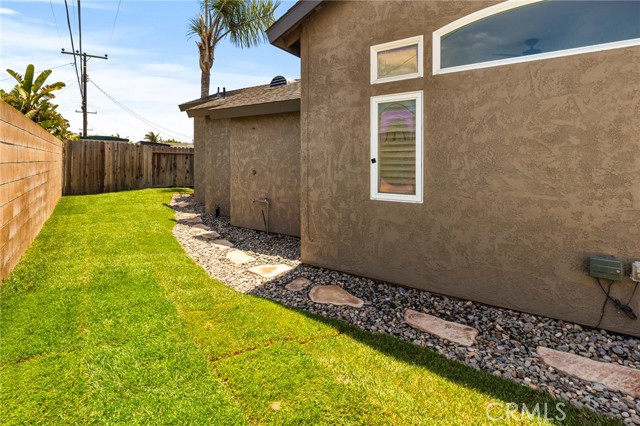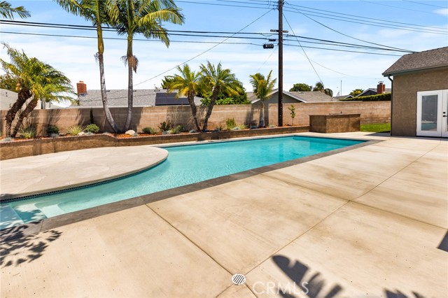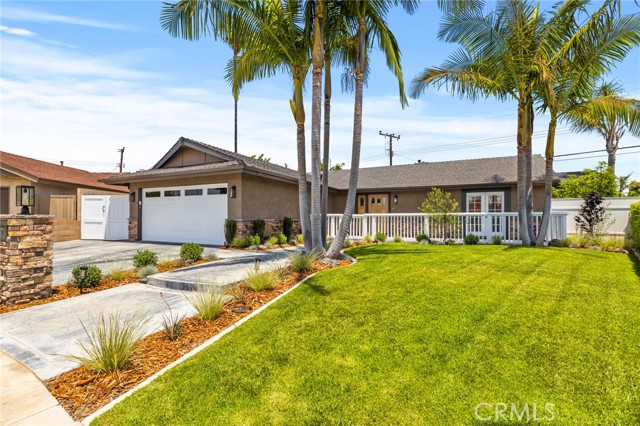 Welcome Home! This stunning home is filled with custom upgrades and charming details. Features include cathedral ceilings, a custom fireplace, crown molding throughout, tumbled marble flooring, and recessed lighting. Step into the huge living room with wall-to-wall French doors that look out to a tropical paradise back yard, complete with custom landscaping, resurfaced pool, perfect for entertaining or simply unwinding after a day at the beach! The remodeled kitchen boasts rich cherry wood cabinets, stainless steel appliances, granite countertops, and much more! The large master suite is a true retreat with hardwood flooring, French doors, a custom archway, crown molding, shutters, and a ceiling fan. Enjoy the master bath which truly feels like a spa, featuring granite countertops, dual sinks, custom wood cabinetry, a huge stone soaking tub, a stone shower, and custom lighting. The spacious second bedroom has hardwood floors, French doors, crown molding, wainscoting, custom shutters, a ceiling fan, and recessed lighting. The third bedroom also features hardwood flooring, a ceiling fan, crown molding, and custom shutters. The beautifully remodeled hall bath shines with stylish finishes and upgraded details. Two side yards, one with a large area to store jet skis, kayaks, inflatable river toys and more. This home is a located close to top-rated schools, shopping, Pacific City, downtown Huntington Beach, and, of course, the beach!!Interested in this Listing?