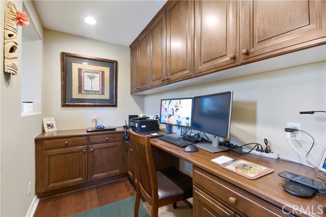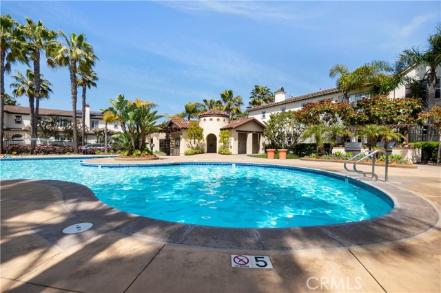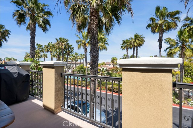 Welcome to 21320 Veleta Cir, a beautiful Mediterranean style townhome located in a prime location inside the gated community of Sea Cove at The Waterfront. This model home is the largest floor plan "5" posses a spacious design of approximately 2670 sqft of open living space offers 2 sizable bedrooms 2 bathrooms, 1 main floor powder guest bathroom, with an inclusive upstairs loft with added built-in library shelves, spacious primary retreat and home office. This beautifully appointed home inhabits each room to feel cozy with high wood beam ceilings in living room paired with a dramatic cozy fireplace, media niche, surround sound, and carpet flooring. Spacious gourmet kitchen encompasses built-in stainless steel appliances, plantation shutters, beautiful crafted cabinetry, brick/iron wine cellar, a wrap around breakfast bar topped with granite countertops, and hardwood flooring open to family room with French doors open to patio deck overlooking pool. Charming round formal dining room has a view of the terrace. Custom window covering treatments throughout home and classy iron rod stairs. Elongated front porch with a view of the greenbelt and balcony has a view of the pool area. So much detail and more to see in this beautiful home plus great location steps to the pool. Association amenities offers gated controlled access to pool/spa area, professional landscaping. Half a block to the beach, short distance from pier, downtown, Pacific City & across the street to the Hyatt & Waterfront Hilton. Located in an exceptional private community known for its resort style neighborhood and year around professional landscape makes what you are looking for in a home and community.Interested in this Listing?