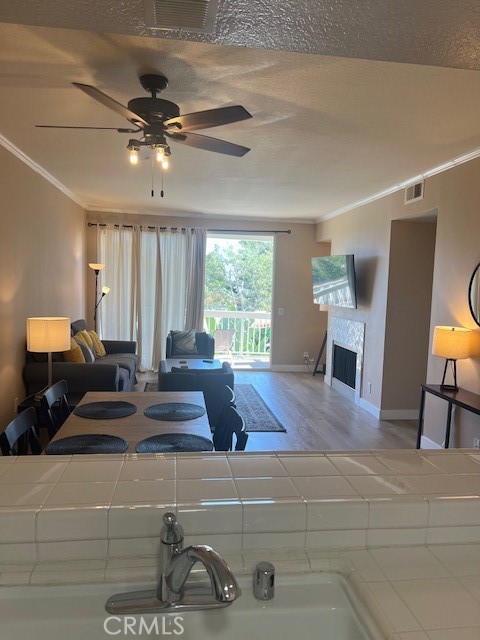 This fully furnished 2-bedroom, 2-bathroom unit offers prime living in a prestigious gated community with 24-hour security in Huntington Beach. Enjoy peekaboo pool views from your private balcony and luxury vinyl wood flooring throughout the unit. The kitchen boasts a large breakfast bar, while the living room features a fireplace and sliding glass door, seamlessly merging indoor and outdoor living. The spacious primary bedroom includes a remodeled ensuite bath and another balcony. Community amenities include 4 pools, spas, clubhouse, tennis court, and dog park. Two assigned parking spots in the subterranean garage are included, with additional guest parking available. HOA covers water, trash, and sewer. Ideal for a 6-month furnished lease. Close to beach, shopping, and dining.