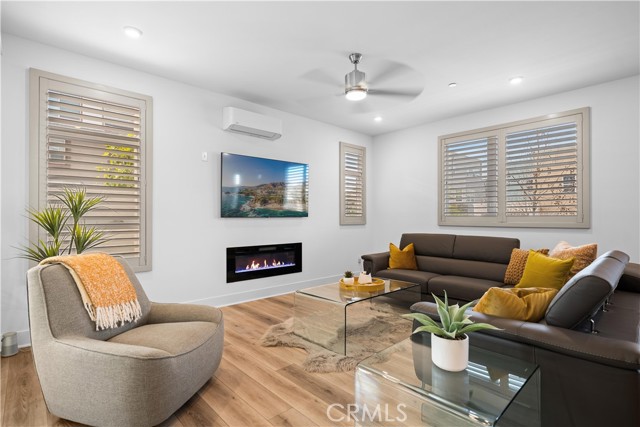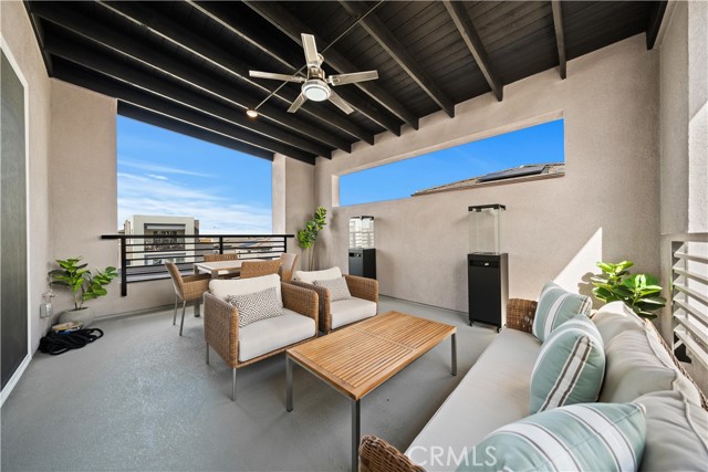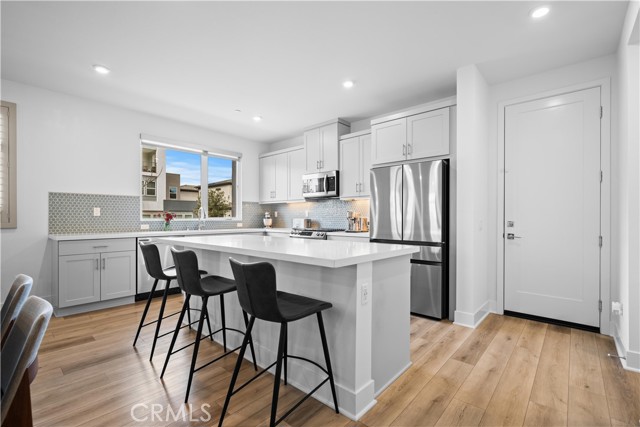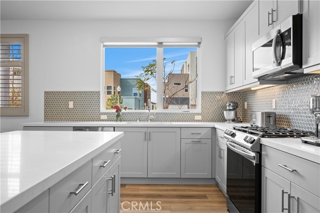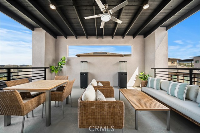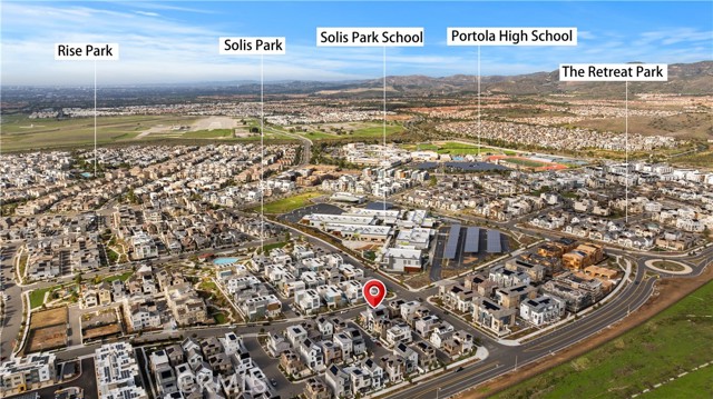 Stunning fully furnished 2,419 sq. ft. 4 bed, 2.5 bath three-story home located on a corner lot in Great Park s Solis Park neighborhood. Features beautiful laminate flooring, fashionable grey cabinetry, matching plantation shutters, glass art dcor, Scandinavian Designs furniture, and Samsung appliances throughout. On the ground floor, the kitchen boasts Valentino quartz countertops, full height backsplash, self-closing cabinets, a storage closet, and walk-in pantry. The open plan family room includes a dining table, credenza, L-shape leather couch with chair, electric fireplace, and big screen TV. A covered patio and yard features turf, pavers, a decorative fence, and pizza maker. The two-car garage includes a finished epoxy floor, multi-tier Husky shelving, and electric vehicle charging plug. On the second floor, the master bed has a finished walk-in closet, deck, walk-in shower, tub, double sink, and toilet. A beautifully furnished second bedroom with reach-in finished closet shares a double sink tub and shower bath with a third guest bed. The fourth bedroom is presently configured as a home office, with an L-shaped desk and matching cabinetry. On the third floor, a spacious den includes a stunning leather couch, matching dining table and chairs, credenza, bookcase, and 87 big screen TV with surround sound. A fully furnished heated patio with mountain and city views awaits on the other side of a sliding door. The home boasts owned-solar, a security system with solar powered cameras, ENERGY STAR qualified ductless heating and cooling equipment, and ceiling fans throughout. The tankless water heater generates immediate hot water at the push of a button. The property is located on a corner lot, surrounded by HOA maintained eco-friendly drip-irrigated landscaping. Two state-of-the art resident only community facilities featuring pools, playgrounds, outdoor cooking & picnic areas, banquet facilities, meeting rooms, trails, and refreshing park side vistas are within proximity. Top-tier K-8 Solis Park K-8 and nationally ranked Portola High School are a short walk away. Interstates 5 and 405, and toll roads 133 and 241 are within a five-minute drive, as is the Great Park balloon with surrounding sports stadiums, ice rink, museums, and farmer s market. Don't miss the opportunity to own this exceptional home that perfectly combines luxury, functionality, and an unbeatable location!Interested in this Listing?