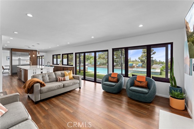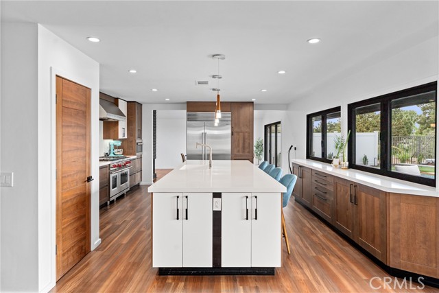 Welcome to 19165 Beckwith Terrace, a masterfully reimagined residence in the heart of Irvine's prestigious Turtle Rock Terrace community. This 5-bedroom, 3-bathroom home spans 3,078 square feet on an 8,208 square foot lot, offering a harmonious blend of modern luxury and timeless design. The home's exterior showcases a contemporary facade with clean lines and a thoughtfully landscaped front yard, leading to a spacious driveway and a three-car garage. Upon entering, you're greeted by an open-concept living space bathed in natural light, accentuated by new Marvin fiberglass windows and La Cantina bi-fold doors that seamlessly connect the indoors to the outdoors. The gourmet kitchen is a chef's dream, featuring top-of-the-line Sub-Zero and Wolf appliances, sleek cabinetry, and a generous island perfect for entertaining. Adjacent to the kitchen, the living and dining areas offer ample space for gatherings, all enhanced by solid core walnut doors and Lutron smart switches and dimmers that add both elegance and functionality. Retreat to the primary suite, a sanctuary of comfort with ample closet space and a spa-like ensuite bathroom. Additional bedrooms are generously sized, each equipped with powered shades for privacy and comfort. Step outside to your private oasis a fully remodeled backyard completed in 2020. The centerpiece is a re-plumbed pool accompanied by a newly added hot tub, all set against a backdrop of meticulously designed hardscape and landscape. The outdoor pavilion, equipped with powered shades, offers a perfect setting for al fresco dining or relaxation. Additional upgrades include a new HVAC system and tankless water heater installed in 2020, a mini-split A/C in the garage, and a new water main added within the last year, ensuring peace of mind for years to come. Located within the highly acclaimed Irvine Unified School District and just minutes from world-class shopping, dining, and recreational amenities, 19165 Beckwith Terrace is more than a home it's a lifestyle. Don't miss the opportunity to own this exceptional property that perfectly balances luxury, comfort, and convenience.