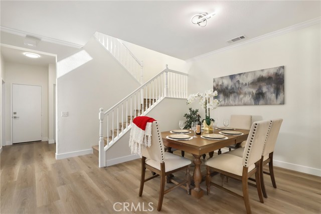 Discover the epitome of refined living in this exquisite residence 5 bedroom , 3 full bath home nestled within the prestigious gated community of Harvard Square. Boasting an airy open-concept layout, the living room, dining area, and kitchen harmonize effortlessly, creating an inviting space perfect for both relaxation and entertainment. Culinary enthusiasts will delight in the gourmet kitchen featuring stainless steel appliances, abundant cabinetry, and sleek countertops, ensuring seamless meal preparation. Ideal for guests or a private home office, a convenient downstairs bedroom and full bath enhance the home's functionality. Fresh designer paint and brand-new luxury vinyl flooring throughout lend a contemporary and sophisticated atmosphere. Upstairs, the generously sized bedrooms offer tranquility and style, with the primary suite showcasing a spa-like bath and ample closet space. Additional storage and direct access from the attached two-car garage provide practical convenience. Step outside to the expansive backyard oasis, offering a serene retreat for outdoor gatherings or enjoying the California sunshine in privacy. Residents of this secure gated community relish access to a serene park and sprawling green spaces, perfect for leisure and recreation. Situated within an award-winning school district, this home is mere minutes from top-rated schools, Trader Joe s, The Irvine & Tustin Marketplace, The District at Tustin Legacy, and major commuter routes including the 241 Toll Road and the 5 Freeway. Embrace the opportunity to own a turnkey residence in a coveted location with low HOA fees and No Mello-Roos, combining convenience, elegance, and an exceptional lifestyle. Don t miss out on this remarkable chance to call it your own!Interested in this Listing?