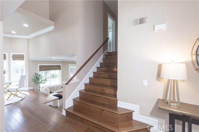 Located in the sought-after Northwood neighborhood, this 4-bedroom, 3-bathroom home offers 2,132 sqft of bright, comfortable living. A downstairs bedroom and full bath provide flexibility for guests or multi-generational living. Enjoy vaulted ceilings, hardwood floors, crown molding, plantation shutters, and a cozy family room with custom built-ins and a glass-rock fireplace. The kitchen features country-style cabinets, granite countertops, and a bay window overlooking the private backyard and patio.The spacious primary suite includes an updated bathroom with a skylight, while two additional bedrooms and a bathroom with a walk-in shower complete the upstairs. Tucked away on a quiet cul-de-sac, you're just a short distance from top-rated schools, parks, and community amenities including a pool, spa, BBQ area, playground, and tennis courts. Move-in ready and full of charm.Interested in this Listing?