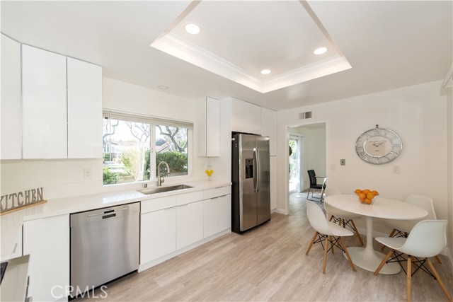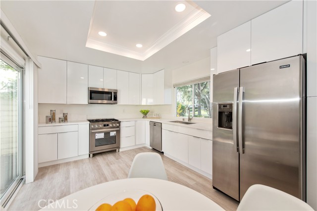 The Most Popular Floor Plan in Woodbridge! Single Story, 3 Bedroom, 2 Bath with third bedroom used as a den. Newly Remodeled Kitchen with Bosch Appliances, Upgraded European Style Cabinets & Neutral Quartz Counters, Remodeled bathrooms approximately 18 months. Primary Bedroom with walk in closet; complete with sliding door leading you to private patio. Primary Bathroom has walk in shower and separate dual vanity area. 2 Car Garage with direct access. Washer/Dryer hook ups in garage. Walking distance to schools, steps to a park, Easy access to I-405 and I-5 Freeways. Community amenities includes 2 lakes with sand beach lagoons , paddle and row boats, playgrounds, club house, boating and fishing. 26 pools including a junior Olympic sized pool with life-guards, 20+ tennis courts, volleyball, shuffleboard, pickle ball, fitness courts and basketball courts. Great location with easy access to entertainment, transportation, shopping and recreation.Interested in this Listing?