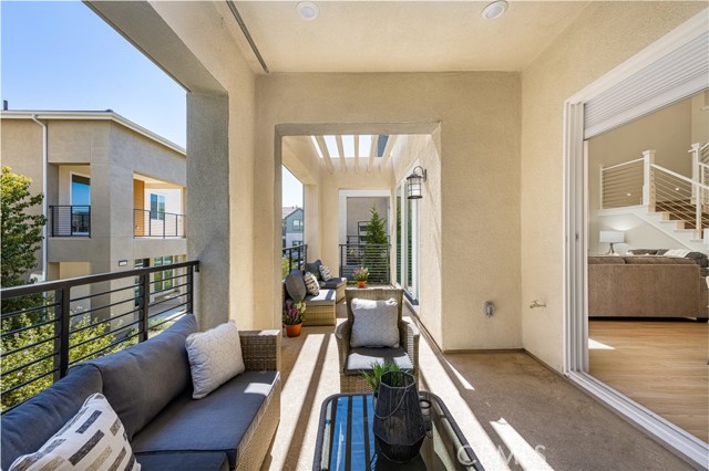 Live the California lifestyle you've always dreamed of in the heart of the Great Park. This highly upgraded home sits in the center of the highly desirable community of Rise Park. Featuring modern architectural design with custom quality upgrades thru-out, this home surpasses any home in this price range. This stunning residence features 3 spacious bedrooms, 3 full bathrooms, and a loft/retreat, with 2,505 square feet of comfortable living space for everyone. Entering the first floor you'll love the flexible floor plan with a living room, full bathroom, office/ bedroom, and two patio spaces which is perfect for out-of-town guests. The second bedroom and full bathroom are on the second level, which also boasts a spectacular modern kitchen, cathedral ceilings, walls of windows, euro-white cabinets, quartz countertops, custom tile backsplash, top-of-the-line GE Cafe stainless steel appliances, a large center island with seating, a dining area, a large family room, and an adjoining deck perfect for BBQing and entertaining. The primary suite with a luxurious bathroom that features dual vanities, a walk-in shower, a separate soaking tub, a walk-in closet, a large balcony, and a loft/retreat is located on the third floor. Inside laundry room with sink. Custom upgrades include: tile plank flooring, baseboards, ceiling fans, solar, Hunter Douglas motorized blinds, tankless water heater, LowE energy efficient windows, and Bali brand top-down design blinds. Just a short walk to Portola High School, Rise Park, a luxurious 50-meter lap pool, a swimming pool, a spa, BBQ's, picnic areas, fire pits, pool tables, a playground, a club house, manicured hiking and biking trails, and top-rated Irvine schools. This is the resort lifestyle with a small-town community feel that you've dreamed of that now can become a reality. The seller has relocated and has priced the property to sell. This property won't last long at this price. Hurry!!Interested in this Listing?