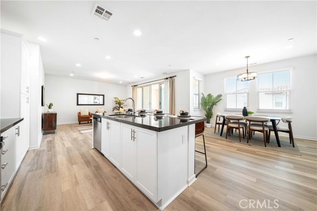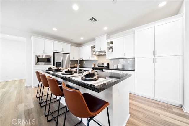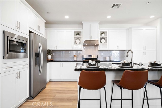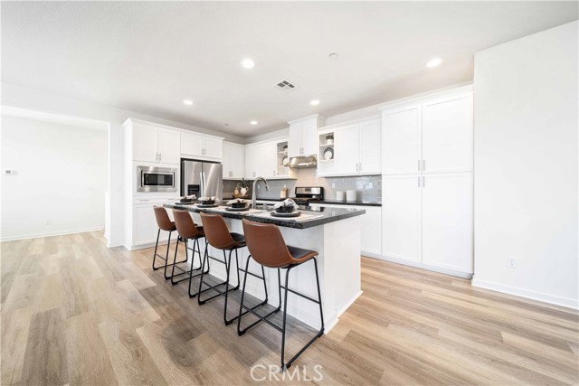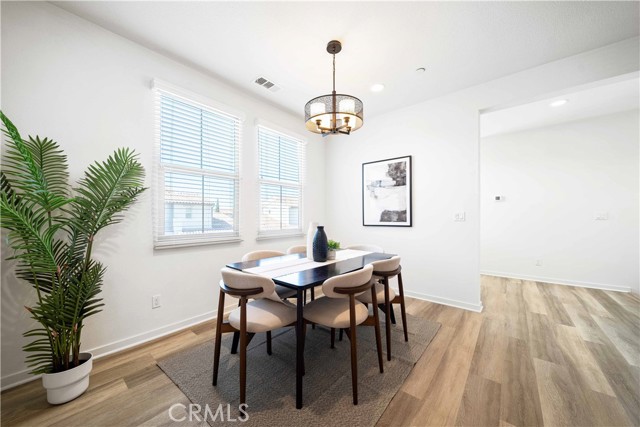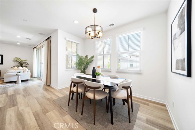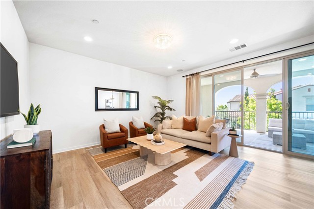 Welcome to 201 Trailblaze A Stunning William Lyon Home! Nestled in the heart of Portola Springs, this beautifully designed 2-bedroom, 2-bathroom home offers approximately 1,574 SQFT of living space and a spacious 2-car garage ready for its new owners! Designed for modern, low-maintenance living, the home features an inviting foyer that leads into a bright and airy GREAT ROOM equipped with built-in speakers, showcasing the true essence of open-concept living. The gourmet kitchen is both stylish and functional, featuring modern white shaker-style Thermafoil cabinets with satin nickel pulls, granite countertops with a stunning tile backsplash, stainless steel appliances, and a generous island with seating perfect for gathering and entertaining. A sliding glass door seamlessly connects the dining area to the outdoor space, enhancing indoor-outdoor living. The primary suite is a tranquil retreat, offering a spacious walk-in closet, double sink vanity with quartz countertops, custom backsplash, laminate flooring, and a large walk-in shower with custom tile accents. The secondary bedroom is generously sized, and a convenient indoor laundry room completes the home. This property is loaded with upgrades, including impressive laminate flooring, recessed lighting, a ceiling fan on the oversized patio, a tankless water heater, a 240V outlet in the garage, a TESLA charger, and smart home features. The oversized garage boasts epoxy flooring and ample storage. Situated on a premium corner lot, the home offers picturesque views of lush landscaped walkways, greenbelts, and the surrounding neighborhood. Living in Portola Springs means access to 15+ amenity-rich parks, pools, sports courts, barbecue areas, and more all just steps from your front door. Located in the highly acclaimed Irvine Unified School District, serving Portola Springs Elementary, Jeffrey Trails Middle School, and Portola High School. Plus, enjoy convenient access to Woodbury Town Center, shopping, entertainment, parks, freeways, and more!
