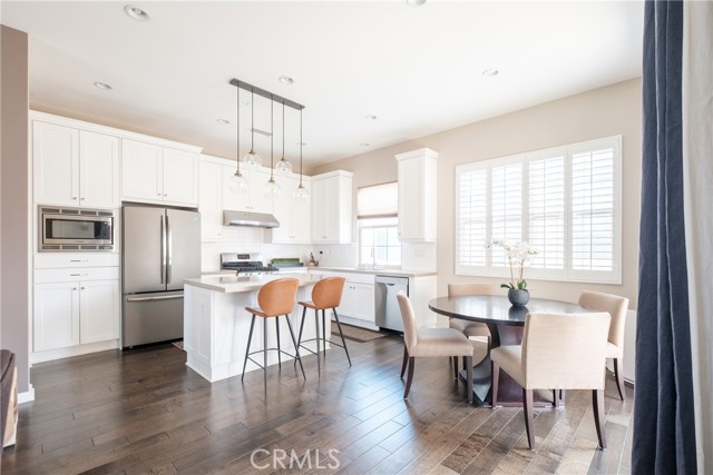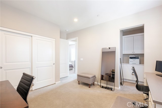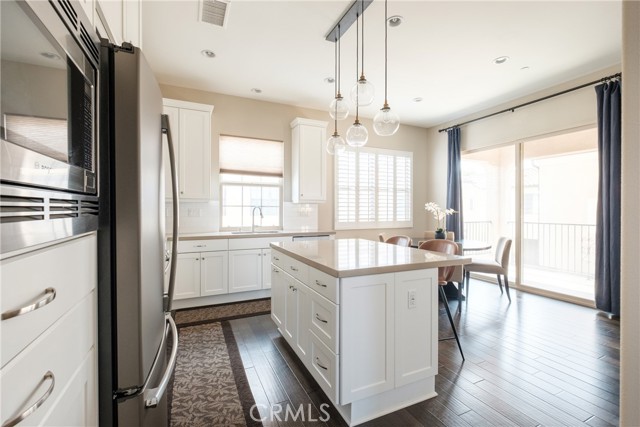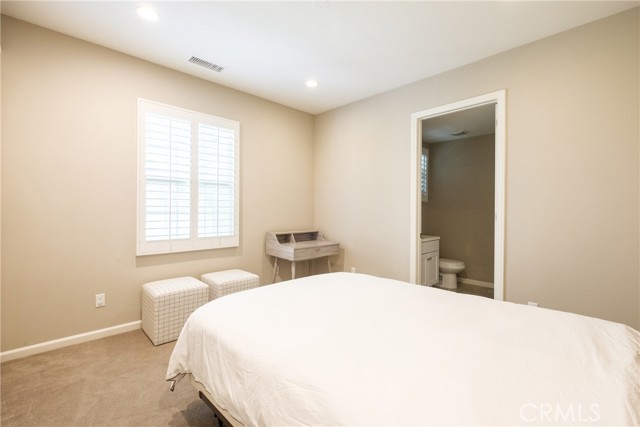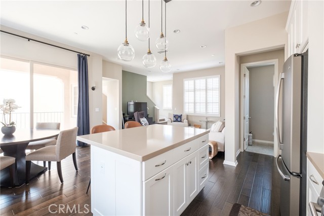 This stunning, upgraded and immaculately maintained 3 bedroom / 3.5 bathroom house is located in a quiet neighborhood across the street from a park. The first floor entry gives direct access to the attached garage and includes a bedroom and ensuite bathroom that is perfect for guests or a home office. The second floor is an open-concept space with engineered hardwood, high ceilings, recessed lighting, and large windows that fill the room with lots of natural light. The Living Room, Kitchen, and Dining Room are connected to create the perfect entertainment space. The gourmet Kitchen is fully loaded with stainless steel appliances, a gas cooktop, a large kitchen island, beautiful Caesarstone countertops, white subway tile backsplash and classic white cabinets. There is also a private balcony to relax outdoors. The third floor has two additional bedrooms, each with its own ensuite bathroom. The Owner's Suite has a private toilet area, double vanity, and glass-enclosed shower. The other bedroom has a built-in desk and bench and can also be utilized as an office. Separate laundry room with built-in overhead cabinets. Like-new washer and dryer are included! Attached 2-car garage with epoxy flooring, a ton of built-in storage cabinets with extra guest parking in the drive court and on the street. This home is walking distance from award winning schools, resort-style pools and spas, great lawns, picnic areas, soccer fields, playgrounds, basketball courts, BBQ pits, Jeffrey Trail, numerous parks and much more. Enjoy all the luxury of Cypress Village with quick drives to retail centers, Irvine Spectrum and multiple freeways for a shorter commute anywhere in Orange County.