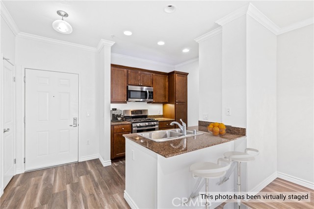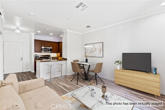 A stunning 2022 newly renovated condo situated in a HIGHLY DESIRED, SAFE, & CONVENIENT location of Irvine, very close to UCI (University of California, Irvine) & borders Newport Beach. This home is a very short distance (under 5 minutes drive) to the University of California, Irvine (UCI) & much more!!!! The condo is in a GATED community that features exclusive Resort Style amenities featuring a swimming pool, jacuzzi, BBQ area, clubhouse, fitness center, basketball court, office room, and more! As you walk in to this LUXURIOUS condo, the open floor plan greets you with a gourmet kitchen that expands to a dining area with a glass crystal chandelier and spacious living room with recessed LED lighting. The kitchen showcases under cabinet lighting, granite counter tops, newer appliances (refrigerator, microwave, stove/oven, dishwasher), & quality luxury-vinyl water resistant flooring. Through the living room's glass sliding adorned with custom high-grade floor to ceiling curtains with sheers, boasts a balcony that oversees a great open view of the community. The orientation of the home is great as there is just perfect natural lighting. Within the hallway is a laundry closet with a newer washer & dryer unit. It s amazing that the home can be more energy efficient with a NEST thermostat located the hallway. A carpeted bedroom with custom curtains and modern glass sliding closet doors also have a view go the community. A large bathroom features a NEW GLASS walk in tub shower & ample cabinet storage. There is one parking spot in the gated structure on the same floor, providing quick access along with additional guest parking available onsite. Trash utility is COVERED by landlord. In IN SUCH A HOT LOCATION near UCI, Newport Beach, several fine dining options, shopping plazas ( Park Place, University Town Center, DJ Jamboree Plaza, South Coast Plaza, etc.), markets, banks, local hiking trails, & more! , With easy access to 405 /55 / 73 freeways, this home put the rest of Southern California within reach.! Fulfilling the Southern California lifestyle you've dreamed of, come check out this gem & make it yours today