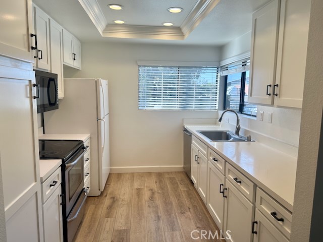 Discover comfort and convenience in this lovely upper-level, 2-bedroom, 2-bathroom end-unit condo now ready for you to move in and enjoy. As you step inside, you'll immediately notice the abundance of natural light that fills the space, highlighting the newer easy-care flooring that extends throughout the condo. The open concept living and dining areas offer ample space for relaxation and entertaining. The kitchen features recessed lighting, NEW white quartz countertops, new sink and ample white cabinetry that provides generous storage space, for your cooking needs. As you retreat to the spacious master suite with it's own balcony, you will enjoy a serene view of the pool. The en-suite bathroom boasts white cabinets with double sinks and a glass-enclosed shower. The light filled secondary bedroom also overlooks the pool offering a peaceful haven for family or guests. The hall bathroom features white cabinetry, NEW quartz countertop and sink and a glass-enclosed tub with shower. For your convenience, a washer and dryer are included, streamlining your daily routines. Just a short stroll away, the association pool beckons, providing the perfect spot to relax and soak up the California sun. Nestled within the sought-after ORANGETREE community, this condo's location is truly unbeatable. Proximity to shopping centers, Irvine Valley College, and Oak Creek Golf Club ensures you're never far from essentials and leisure activities. With effortless freeway access, world-class shopping destinations like Fashion Island in Newport Beach and South Coast Plaza in Costa Mesa are within easy reach. Additionally, residing in the esteemed Irvine School District offers access to top-tier educational opportunities. Embrace the exceptional Irvine lifestyle schedule your private tour today.