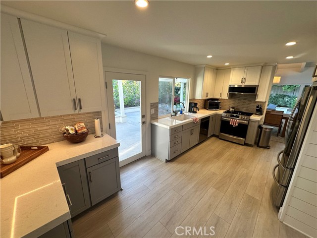 An exquisite jewel box of a home nestled in a lovely neighborhood environment in University Park's Parkside Homes. Completely remodeled three years ago with state of the art appliances (refrigerator with ice maker, convection oven with air fryer and steam microwave, customized luxury cabinets, premium quartz counters, large kitchen sink with an extra bar sink, remodeled baths , including custom mirrors, faucets, lighting, customized closets, new fireplace surround, new doors and windows, and composition wood flooring throughout the entire single level home. Washer and Dryer included in garage and outlet wired for an electric vehicle. The extra large wrap around yard boasts a custom fire pit, ambient landscape lighting, mature landscaping, large patio shade trellis and gas connection for outdoor barbeques.Interested in this Listing?