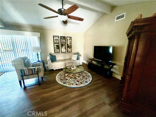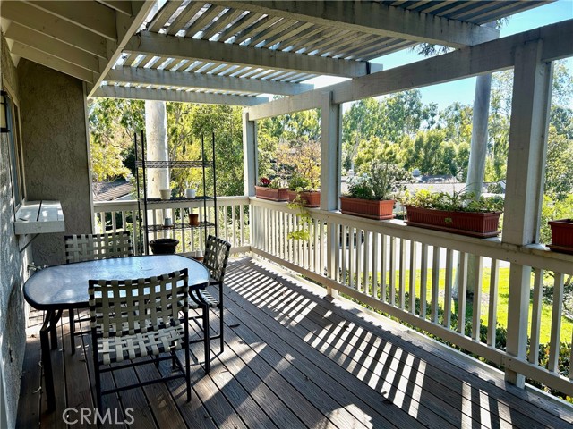 This dramatic, view home has 3 bedrooms, 2 baths, is fully furnished and is ready to move in. Linens, dishes, small appliances, silverware and spices included. The downstairs is an entry and office and the upstairs contains the bedrooms, bathrooms, living, family dining room and kitchen. It has been remodeled and updated with very high end appointments The home has been freshly painted and has new wood like laminate flooring. The kitchen has newer cabinets, stainless appliances and granite counters. The master bath has granite counters, custom tile/rock work and a spa tub. The rear patio overlooks a large greenbelt and a rocky knoll. This model has the main living area on one floor. It is great for relaxing and is very private. The home is walking distance to Turtle Rock Elementary, University High School and UCI. The Association has tennis courts, a pool and a spa. The owner is willing to go month to month or a short term rental.