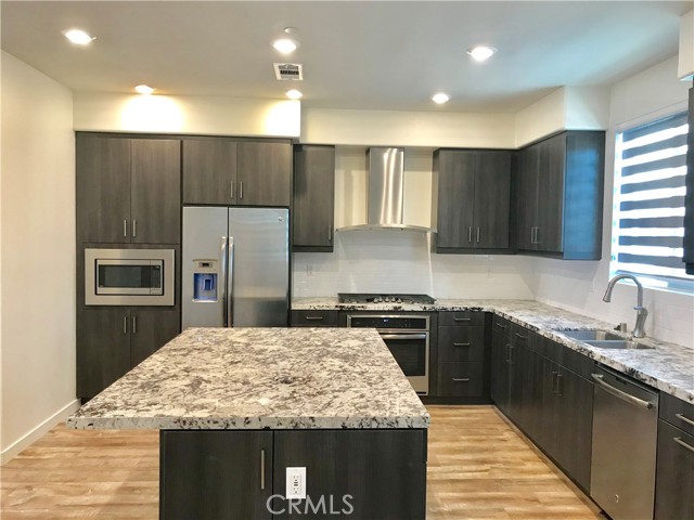 Welcome to your dream condo in the highly sought-after Great Park neighborhood! This stunning residence boasts beautiful laminate flooring throughout, creating a warm and inviting atmosphere from the moment you step inside. The main floor features a convenient bedroom and bathroom, along with an attached two-car garage wihich includes 240V outlet for charging an EV, providing both comfort and functionality. As you ascend to the second floor, you ll discover an expansive living room that seamlessly connects to a modern kitchen, equipped with sleek granite countertops, stainless steel appliances, upgraded cabinetry, and a stylish tile backsplash perfect for both cooking and entertaining. The third floor is a sanctuary, featuring a luxurious primary bedroom with an en-suite bathroom that boasts dual sinks and upgraded tile finishes. Two additional bedrooms, another well-appointed bathroom, and a laundry room complete this thoughtfully designed upper level. Step outside to your two private balconies: one off the living room, ideal for morning coffee, and the other connected to the primary bedroom, offering breathtaking views of the hills perfect for enjoying stunning sunsets. Community amenities are abundant, including a sparkling pool, soothing spa, tot lot, parks, sports court, and barbecue areas, catering to every lifestyle. Plus, the location offers easy access to shopping, freeways, and top-rated schools. This exceptional condo combines modern living with a vibrant community don t miss your chance to make it your own!Interested in this Listing?