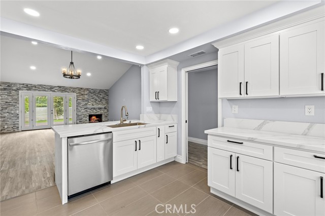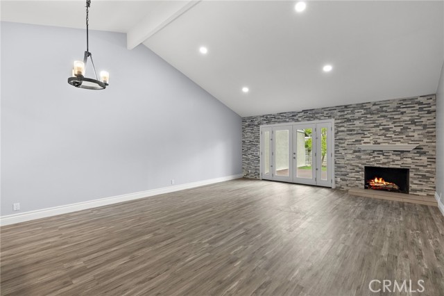 Enjoy this stunning, newly remodeled single story home nestled in the lovely Woodbridge community on a prime corner lot with no homes behind! The kitchen offers quartz countertops, elegant shaker cabinets, and brand new energy efficient appliances. Enjoy the spacious living area equipped with high ceilings, custom stone accent wall, and a cozy fireplace with hearth. The primary suite offers high ceilings, colonial shutters, a walk-in closet, and a lovely bathroom with dual vanities over a quartz countertop and a walk-in shower with tasteful barnyard style sliding doors. Step outside into your generously sized, low-maintenance backyard featuring a large turf lawn and a durable Trex deck perfect for entertaining and dining. All new designer paint, modern fixtures, recessed lighting with dimmers, LVP flooring throughout and a Tesla EV charging setup! Enjoy Woodbridge amenities and award winning Irvine Schools!