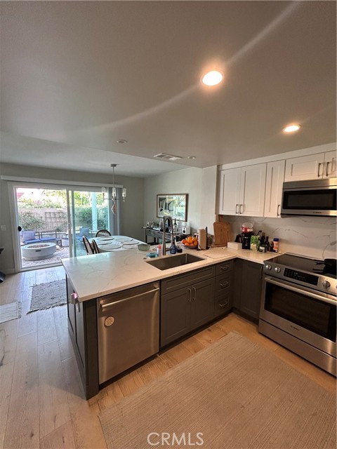 For Lease, a beautifully upgraded home in the Prestigious Princeton Townhome community near UCI. The second level offers TWO Master Bedrooms with en Suite bathrooms. The first level also has another room to be used as an Office, Den or Bedroom with an additional 3/4 Bathroom. White Kitchen cabinets, Quartz Counters and Backsplash all compliment the Chef's kitchen with Bosch appliances and Gorgeous Fisher Paykel Refrigerator. The Princeton Townhome community offers two pools, tennis courts, sand volleyball court, and soccer field over looking the beautiful Back Bay. John Wayne Airport 8 minutes away and the beach only 15 minutes away.