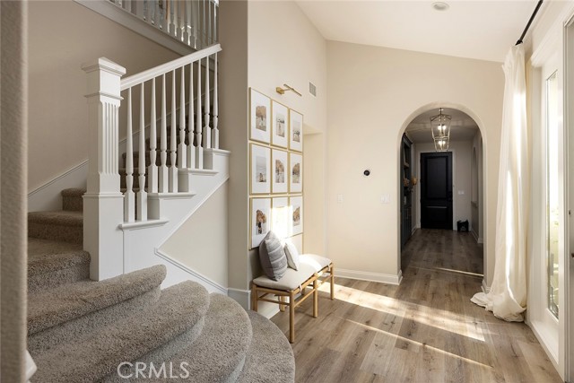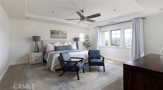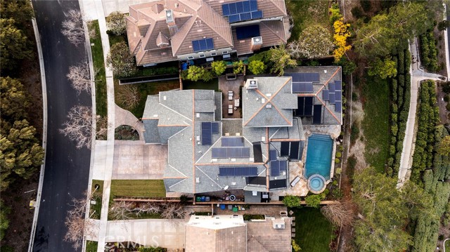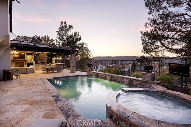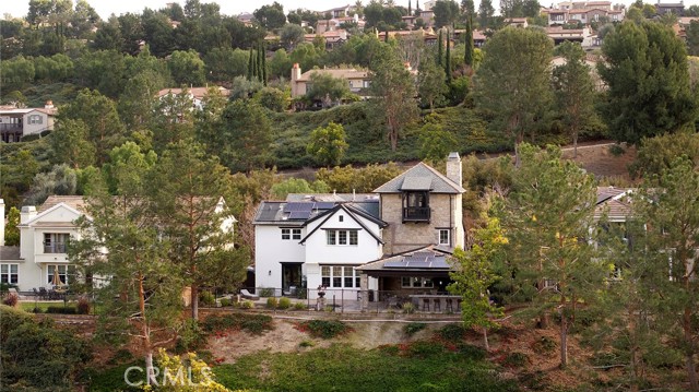 Located in the prestigious Meriden tract of Covenant Hills, a guard-gated community in Ladera Ranch, this elegantly updated residence epitomizes Southern California living with its exceptional yard and breathtaking views. Situated on a private, single-loaded cul-de-sac, the home boasts five ensuite bedrooms and five-and-a-half baths, including a main-level suite with an adjacent sitting area or office. Spanning approximately 4,673 sq. ft., this home seamlessly blends refined entertaining with effortless daily living. The grand foyer opens to sophisticated formal living and dining areas, complemented by a custom built-in, a versatile bonus room, and a comfortable family room with a fireplace. The chef s kitchen is a culinary masterpiece, featuring quartz countertops, an oversized island, and top-tier appliances, including a six-burner cooktop with a griddle, a built-in refrigerator, additional refrigerated drawers, and a walk-in pantry equipped with its own refrigerator and wine cooler. Additional amenities include a laundry room, owned solar, a Tesla charging station, and a whole-house fan. The primary suite exudes luxury, showcasing a tray ceiling, leaded-glass windows, and a spa-like bath with a jetted tub, a spacious dual-head shower, dual vanities with a sit-down area, and a custom walk-in closet with an island and built-ins. The third level offers a flexible loft space, perfect for an office, gym, or potential sixth bedroom. Designed for seamless indoor-outdoor living, the backyard is an entertainer s paradise. A stunning 800+ sq. ft. covered loggia features a fireplace, an outdoor kitchen, its own surround sound zone, and five TVs, all adjacent to a saltwater pool and spa. Additional highlights include newer flooring and professional wiring for Sonos surround sound and data networking, ensuring both work-from-home convenience and top-tier entertainment. This is a rare opportunity to experience luxury, comfort, and premier gated community living in one of Ladera Ranch s most desirable neighborhoods.Interested in this Listing?