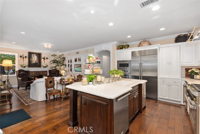 Location!! Welcome to this warm and graceful Ladera Ranch gem! This beautifully designed home settles adjacent to a spacious green belt and shows off with a beautifully lit hillside behind and neighbors to just one side. The decidedly European design provides an uninterrupted intelligent floor plan for easy, practical living, with easy flow from room to room. The sweet, hospitable kitchen offers a nod to the ever-loved Butler s Pantry with a smooth white marble countertop, high-end appliances, illuminated water-glass white cabinets, and under-lit Walnut Island with over-sized sink. Interior highlights: Nickel Faucets, Carrera Marble and White Rhino Marble countertops, Wolf appliances (range with 6 burners, large built-in wall oven with large Microwave above), Subzero Fridge, Cove Dishwasher, Wine Fridge, Designer Series Vent-A-Hood, stand-alone 30 Pound Scot Ice Maker, rich Wood Floors, triple and quadruple Crown Moldings, 9 Inch baseboards, highly sought after Cased Openings throughout, highly skilled millwork throughout, Designer Electrical lighting throughout (task, mood, and artwork lighting), Zone Heating and AC, 18 ft ceiling Dining Room, spacious Bonus Room, 4 gas Fireplaces, Dual-Pane Windows, Fabrica Carpet, attractive Built-ins, Large Attic with Attic fan, and so much more. Exterior highlights: Mature Trees, manicured shrubs, rose gardens, and attractive landscape lighting. Backyard Over-Sized Fireplace introduces the enchanting Courtyard, providing the perfect setting for afternoon luncheons and evening celebrations. Replaced items: AC, Furnace, Water Heater, Appliances, Water Closets, Shower and Sink Faucets, Wood Floors, Bathroom Floor, and backyard Wrought Iron Fence. Garage Epoxy Floor installed May 2025 and fresh paint in several areas. Ladera offers a wide variety of Amenities. Just to mention a few: 4 major Clubhouses AND 11 additional pools, Terramor Aquatic Park with the ever-popular Bucket Pool, Mission Hills Putting Green with truly gorgeous views, and Skate Park. Ladera Ranch is just minutes to Nearby Golf Courses, historic San Juan Capistrano and a short drive to world famous resorts: The Waldorf, The Ritz Carton, Dana Point Resort, and Montage. Walking distance to schools, restaurants, library, and five minutes to Mission Hospital and Mission Mall. You are invited to come experience this special property, offering hospitality, practicality and, of course, luxury. Come see this one-of-a-kind home and see if it doesn t enchant you!