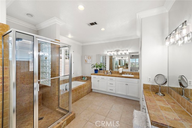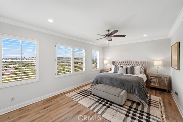 Discover the essence of true Ladera Ranch living in this spacious and refreshed residence, which boasts big Saddleback Mountain and city-light views from its hillside homesite on a single-loaded street. The home embraces everything that Ladera Ranch is renowned for, such as distinctive architecture, upscale appointments, a tranquil setting, and close proximity to excellent schools, parks, recreation and shopping. Reflecting timeless farmhouse style, the inviting 2-story design features 5 bedrooms and 4 baths, including a main-floor bedroom and bath, an ensuite with window seats and a built-in desk, 2 secondary bedrooms that share a bath, and a grand primary suite with view deck, sitting area, walk-in closet with built-ins, a large shower and separate tub. Approx. 3,118 s.f., the spacious floorplan hosts formal living and dining rooms, and a family room with fireplace and built-in entertainment center and new slide-away door enhancing the panoviews! Mealtime prep is a joy in a newer kitchen with quartz countertops, stainless steel farmhouse sink, white cabinetry, casual nook with built-ins, walk-in pantry and high-end stainless steel KitchenAid appliances. Recent updates include new LVP flooring upstairs, newer water heater, Owned Solar, whole-house water filtration and more! Customized style is enhanced with crown molding, recessed lighting, plantation shutters, tile floors, designer carpet, mirrored wardrobe doors, walk-in closets, and an upstairs study area with built-in desks. Outdoors, a covered front porch features stone flooring, and the remodeled backyard displays paver-finished patios, manicured landscaping, BBQ island, a fire pit and sweeping views.Interested in this Listing?