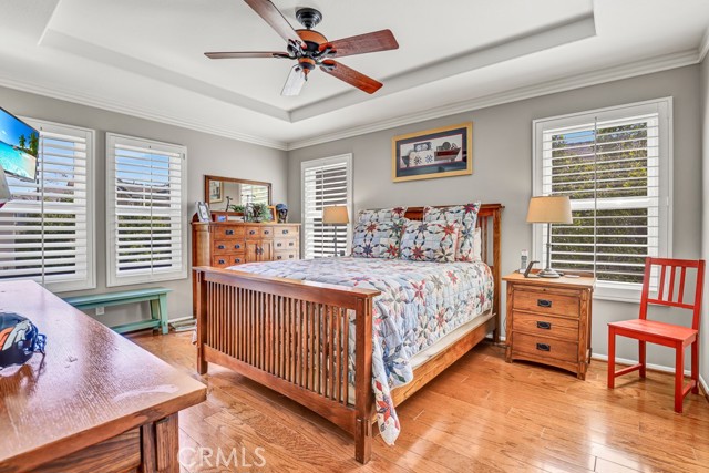 Discover a COMPLETELY DETACHED home in Ladera Ranch! Hitting the market for the first time, this beautifully maintained detached home by John Laing Homes is nestled in the desirable Trails neighborhood and showcases the sought-after Fallen Leaf floorplan with soaring ceilings, tall picture windows, and a thoughtfully designed layout. The welcoming family kitchen features a cozy breakfast nook, counter bar seating, custom pull-out cabinetry, and a built-in desk. Upgraded throughout, the home boasts newer Milgard windows and slider, a recently replaced AC, furnace, and water heater, plus brand-new flooring on the stairs and second floor. Upon entry, you're greeted by stunning custom Knotty Pine paneling with built-in shelving and cabinetry, adding warmth and character. The inviting living room offers a cozy step-down lounge area with a gas fireplace and stone surround. Upstairs, the flexible loft space can easily convert into a third bedroom, while the primary suite features a spacious walk-in closet and a freshly updated en suite. The secondary bedroom features a walk in closet and access to the secondary bathroom. Additional highlights include a built-in tech station for work-from-home convenience, a large laundry room, and smart tv wiring throughout. Step outside to enjoy a private west-facing backyard, designed for relaxation with no direct neighbor views, lush tree-lined surroundings, and pre-wiring for an outdoor TV and grill rotisserie. The two-car garage is both functional and stylish, featuring epoxy flooring, LED lighting, custom storage racks, and a workshop setup. Located in a vibrant community with top-rated schools, only one HOA, and one of the lowest Mello Roos fees in Ladera Ranch, this home offers access to 13 pools, hiking and biking trails, a skatepark, water park, and the nearby Oak Knoll Clubhouse with resort-style pools. A rare opportunity to own a move-in-ready home in an exceptional location don t miss it! FHA and VA APPROVED!!Interested in this Listing?