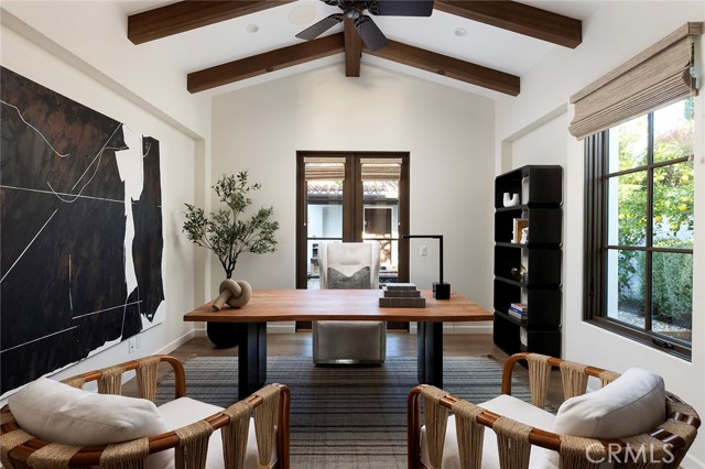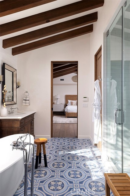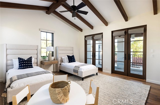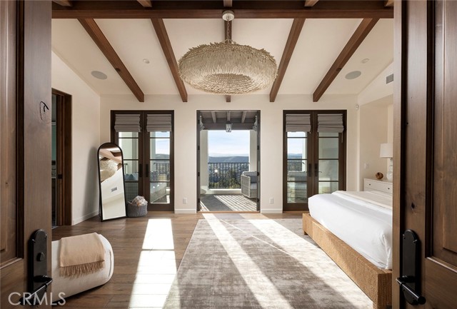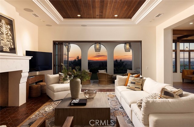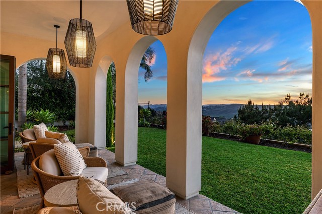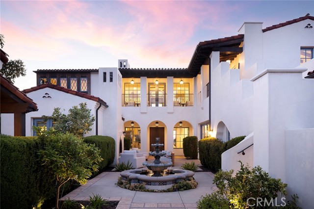 A masterpiece of craftsmanship and sophistication, this one-of-a-kind Spanish estate graces the coveted guard-gated community of Ladera Ranch s Upper Covenant Hills. Designed by the acclaimed architect behind Rancho Valencia Resort, this custom home occupies a rare, highly-positioned lot on a serene double cul-de-sac, offering unobstructed panoramic sunset views of rolling hills and refreshing coastal breezes. A gated, sun-drenched courtyard warmly welcomes guests, where a charming garden with fruit trees, custom fountain, and striking outdoor fireplace create an inviting first impression. Inside, approximately 5,282 square feet of refined living space seamlessly blend grandeur and intimacy, creating a true indoor-outdoor sanctuary. The expansive great room captivates with its intricately inlaid wood ceiling, handcrafted Mexican terracotta tile flooring, statement fireplace, and dramatic wall of La Cantina glass doors, dissolving the boundary between indoors and out. Thoughtfully designed for both beauty and function, the chef s kitchen is appointed with premium Thermador appliances, walk-in pantry, custom cabinetry, and a spacious dine-in and seating area perfect for casual mornings or sophisticated entertaining. Downstairs, three generously sized bedrooms with en-suite baths offer both privacy and comfort. Upstairs, a dramatic staircase with custom hand-forged wrought iron railings leads to the crown jewel: a serene primary suite featuring a vaulted ceiling, spa-inspired bath with modern porcelain tile, freestanding tub, multi-head steam shower, dual vanities, and a private balcony showcasing breathtaking panoramic sunset views and coastal breezes. A second oversized bedroom suite with dual-vanity en-suite bath and a versatile media room with kitchenette and balcony further enhance the gracious upstairs spaces. Completing this exceptional home are elite amenities, including a two-car garage with EV charging, a third garage currently used as a workout room, tankless water heaters, whole-house audio, upgraded lighting, wide-plank oak flooring, and leased solar. Covenant Hills offers exclusive access to a private clubhouse and pool, miles of scenic trails, a putting green, parks, and pools ensuring a luxurious, resort-inspired lifestyle.Interested in this Listing?