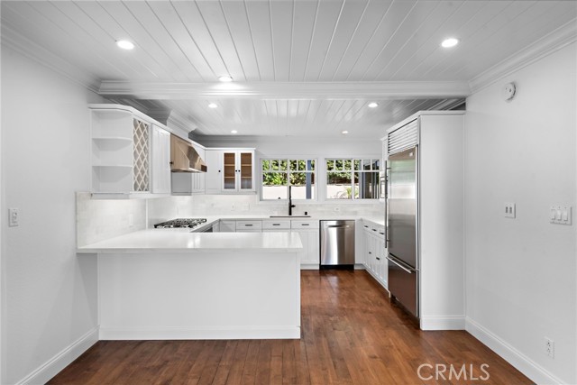Nestled on a rare double lot in Laguna Beach, this exceptional 4-bedroom, 4 ½-bathroom Craftsman-inspired residence offers ocean and city light views. The home s refined exterior features a beautifully landscaped entry with an elegant hardscape stairway & stone accents. Upon entering through the custom Dutch door, you are greeted by a spacious foyer. The main living areas are enhanced by rich wood floors, complemented by newly installed, high-end low pile carpeting in the sleeping areas and stairways. The formal living room offers a serene retreat with a wood-burning fireplace, vaulted ceilings and a charming window seat. The open dining area seamlessly transitions into the newly renovated chef s kitchen, completed in 2025. Featuring light quartz countertops, marble-inspired granite backsplash, stainless steel GE appliances. Additional upgrades include a new farm-style kitchen sink, gooseneck faucet and new disposal, newly painted white cabinetry, glossy shiplap ceilings, and garden-facing windows. The adjoining family room is an ideal space for relaxation, with a pitched ceiling, built-in entertainment center and a fireplace. The main floor also includes an elegantly appointed guest half-bath and a private bedroom with an en-suite. Upstairs, the spacious guest bedroom with a pitched ceiling is accompanied by an updated en-suite, while the secondary bedroom boasts wainscoting. The well-appointed hall bathroom includes a shower and tub combination. The luxurious primary suite is a true retreat, featuring sweeping ocean views from the private balcony and a beautifully updated marble bathroom with a double vanity, skylight, and water closet for privacy. Additional features include a garage with epoxy flooring, overhead storage racks, and a 240V plug for added convenience, as well as an interior laundry room. Designed for effortless indoor-outdoor living, the home offers two front decks connected by a spiral staircase, both designed to capture ocean views. The backyard is an entertainer s dream, complete with custom hardscaping, flat turf, a wraparound fence, a BBQ island and an oversized built-in fireplace. Smart home features include a Ring doorbell, Nest and air conditioning with new ducts. This residence combines the sophistication of modern design with the charm of traditional Laguna Beach architecture, offering the perfect balance of luxury, comfort, and coastal living. Located just moments from world-class dining, shopping, and renowned beaches.Interested in this Listing?