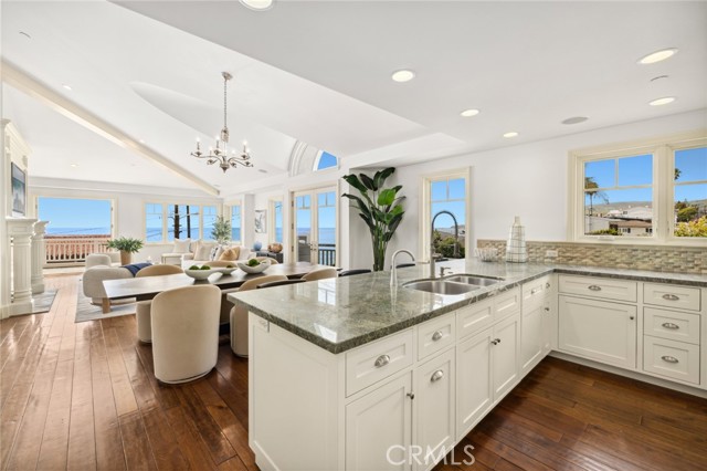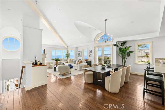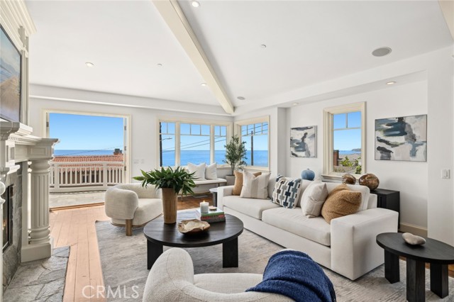 Panoramic ocean, whitewater, north-coast city-light, and Catalina sunset views fill almost every room of this luxurious Laguna Beach home with an enchanting ambiance that redefines the magic of indoor/outdoor living. A prime second-row corner homesite offers an exceptional location in Laguna Village that boasts a rare opportunity to indulge in oceanfront living without the oceanfront price. Uniquely positioned just a few yards from the beach, the New England Coastal-style residence enjoys an unobstructed vantage point that feels like a front-row setting and provides a relaxing and sophisticated lifestyle. Extending approximately 3,660 square feet and home to three ensuite bedrooms, five baths, and flex space for an additional bedroom, the extra open and bright design is bathed in an abundance or natural light and maximizes ocean views. The main level generously caters to entertaining in one vast open floor plan that includes an elegant fireplace and a professional-grade designer kitchen with top-of-the-line appliances including a Sub-Zero refrigerator, Sub-Zero refrigeration drawers, and a six-burner double-oven Dacor range. The ocean-view primary suite is located on the main level, complete with deck access and a private bath, giving the sense of single level living. Two massive entertainment decks extend living areas outdoors, welcoming friends and loved ones outside to share special times together while experiencing fresh ocean breezes and scenic views of the Pacific. Secondary bedrooms with large closets are located on the lower floor for privacy, and two flex spaces on this level are perfect to use as additional bedrooms, a home office, or a secondary entertaining area with its own separate access. The bottom level features a direct-access two-car garage and a gated motor court for ample parking. Genuine wood floors embellish living areas. With a coveted address in Laguna Village s desirable Hip District, this spacious and welcoming home is moments from top restaurants, unique galleries, and renowned Laguna Beach surf spots. Well suited for a second home or main residence. It is rare to discover everything you want in one place, yet here it is, awaiting your arrival.