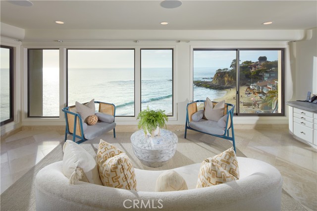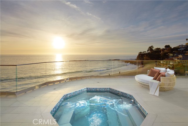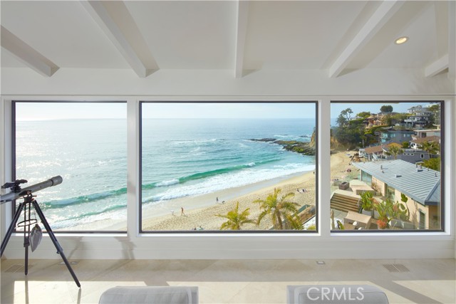 Beyond the gates of Lagunita, this stunning estate overlooks the pristine sands and turquoise waters of Victoria Beach. Sweeping views unfold from nearly every room, showcasing dramatic cliffs and the secluded beauty of Laguna s coastline. Designed for ultimate privacy, the residence features exclusive beach access via rare private stairs and an impressive 66 feet of ocean frontage. Soaring vaulted ceilings, a stately fireplace, and floor-to-ceiling glass frame Catalina Island in the distance, making the formal living room a captivating space. Outfitted with SubZero, Viking, Thermador, and Miele appliances, the gourmet chef s kitchen spills onto a sun-drenched terrace, inviting alfresco dining against the rhythmic backdrop of the waves. An elevated sense of retreat defines the primary suite, where a cozy fireplace, an ocean-view gym with a dry sauna and steam room, and a private terrace create an escape rivaling the world s finest resorts. Indulgence continues in the custom walk-in closet, enhanced by LED lighting. Three generous guest suites extend onto a vast deck overlooking the beach, each adorned with designer wallpaper. Newly remodeled decks strengthen the home's connection to the coastal landscape, offering refreshed spaces for lounging, entertaining, and soaking in the panoramic ocean views. Luxury extends to every detail, including a fully built-out office and an elevator servicing all levels. Glass-railing staircases descend to the lower level, revealing a media room with a wet bar and projector, designed for refined relaxation. A sleek wet bar and striking designer lighting set the tone in the game room, a perfect space for recreation and entertainment. Further along, a 1,000-bottle wine room leads to a sprawling deck with a sparkling outdoor spa, ideal for intimate gatherings under the stars. On the lowest level, an ADU boasts a kitchenette, full bath, and unique built-in sleeping loft offering a stylish and functional retreat by the shore. Completing this coastal sanctuary, a three-car garage and private beach access enhance the seamless blend of exclusivity and convenience. Ideally situated between Laguna s iconic Pirate s Tower and the renowned Montage Resort, this coastal retreat embodies the perfect balance of serenity and sophistication.Interested in this Listing?