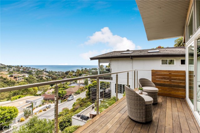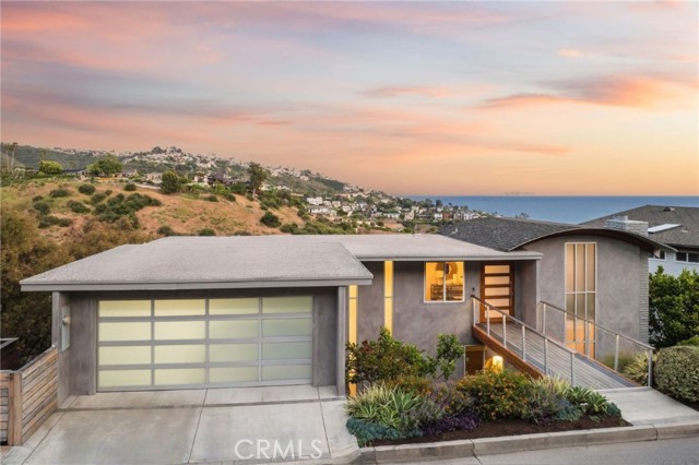Refined panoramic ocean view home situated on an oversized lot in the coveted neighborhood of Temple Hills in Laguna Beach. This sophisticated, four-bedroom, two-bathroom chic modern residence showcases sweeping ocean views from nearly every room offering a serene, picturesque lifestyle. Step into freshly remodeled interiors. A welcoming foyer opens to an inviting living room, where floor-to-ceiling windows frame sweeping ocean views, complemented by a gas-starter, wood-burning fireplace and open to the ocean-view terrace. The formal dining room offers an elegant space for gatherings and is adjacent to the ocean-view kitchen. The first level also includes a convenient main floor bedroom and a remodeled bathroom with custom cabinetry, quartz countertops, tub, and shower. Downstairs, the expansive primary suite is a true retreat, complete with a second fireplace, private balcony, and mesmerizing ocean views. Two additional bedrooms, a second updated bathroom with dual sinks and quartz finishes, an upgraded laundry room, and a versatile home office/flex space complete the lower level. The attached two-car garage features an electric car charging station and direct access to the home. The oversized, street-to-street lot offers rare potential to add an ADU, expand the existing home, or explore a possible lot subdivision. All just moments from Laguna s iconic beaches, top-rated schools, scenic trails, tennis courts, renowned galleries, and celebrated dining destinations.Interested in this Listing?