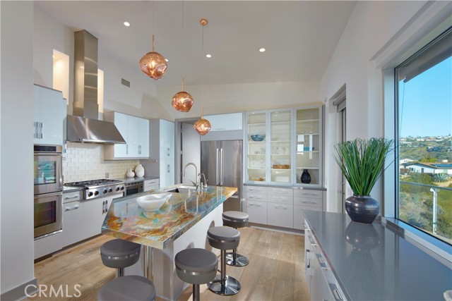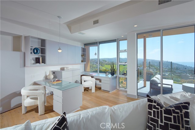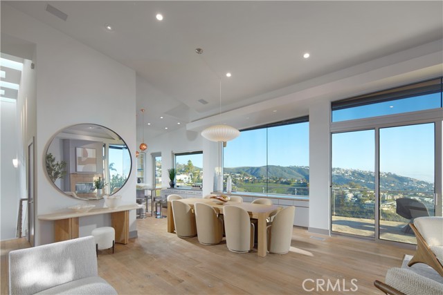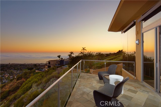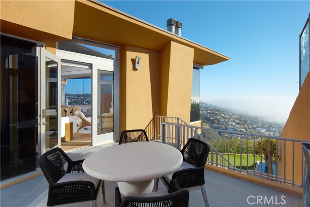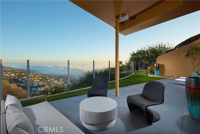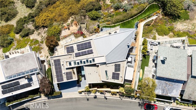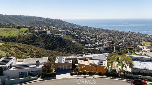 Commanding panoramic views from brilliant sunrises over the hills, across the vast expanse of the ocean, to vibrant sunsets over Catalina, this architectural gem crafted by Al Lopez is meticulously designed to celebrate its spectacular setting. Expansive walls of glass blur the boundaries between indoor comfort and outdoor splendor, leading to a wraparound terrace with sleek glass fencing that offers an unbroken embrace of the coastal vistas. Sunlight pours into the approximately 3,336-square-foot interiors through expansive glass walls and skylights, illuminating the open living spaces, a trio of bedrooms, and three-and-a-half bathrooms. Set on a single-loaded street, the approximately 10,780 SF lot presents a usable yard with artificial turf. Installed in 2022, a swim spa provides a tranquil spot to soak in the spectacular scenery, complete with an automatic rising cover. Equipped with top-tier appliances such as a Dacor six-burner range, double ovens, and a Bosch refrigerator and dishwasher, the kitchen boasts a stunning natural quartzite island and custom cabinetry. A serene escape, the primary suite on the main level captures ocean breezes and tranquil views. Its spa-inspired bathroom is thoughtfully appointed with dual sinks, quartz countertops, a heated towel rack, and a walk-in shower. The lower level boasts a secondary primary suite with a private balcony and guest suite both featuring incredible views. Designed for productivity, the lower-level living area includes two built-in desks for the ultimate home office, with ample space for a possible game room or fourth bedroom. An elevator graciously connects both levels. A solar-powered Tesla battery system including a car charger, empowers the home's efficiency. Completing the remarkable retreat is a spacious two-car garage with epoxy flooring. Laguna s Main Beach, village shops and restaurants, and outstanding schools are just moments away.Interested in this Listing?