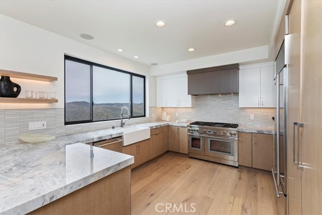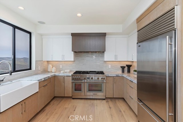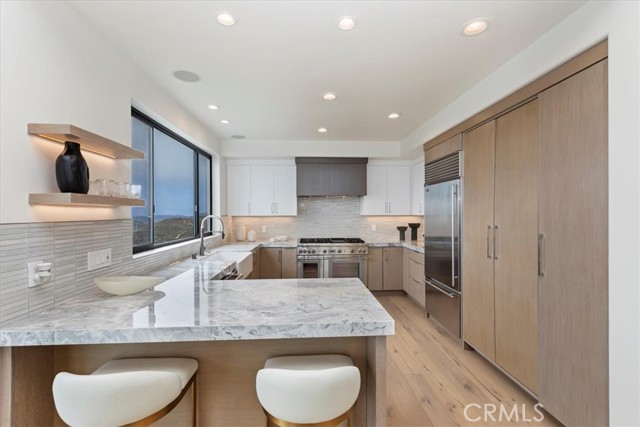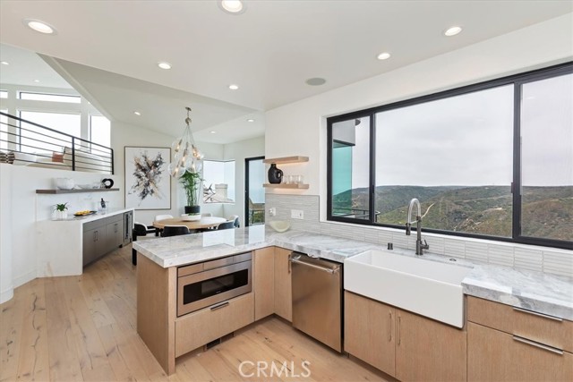 Stunning Ocean-View Retreat at 1425 Skyline Drive, Laguna Beach. This top-notch Laguna Beach home offers ocean views that will leave you breathless. Whether sitting in the spacious living room, gazing out of the frameless windows, or relaxing on your private balconies, you'll enjoy breathtaking views of the canyons, the stunning ocean, Catalina Island, and even snowcapped mountains. These exceptional vistas are visible from almost every room, indoors and outdoors. This is the lifestyle you get in this famous Skyline Drive home in Laguna Beach. Fully renovated, this home combines timeless style and modern luxury, with every detail thoughtfully designed to amaze. A new (just 9 months old) Heating & Air system ensures you stay cozy in the winter and cool in the summer. With 4 bedrooms and 4 bathrooms, this home also boasts Provenza Old World hardwood floors, Sonos audio throughout, and Onyx Glass windows for a sophisticated look. The gourmet kitchen is a true masterpiece, featuring imported Bardiglio Versilis marble countertops, stained rift oak cabinets, a farmhouse sink, and a striking backsplash of Sessemo Raku tiles. It's equipped with top-of-the-line appliances, including a 24 Thermador gas range with double convection ovens, Thermador dishwasher, and a Sharp microwave drawer. The adjacent dining room features a custom-built beverage cooler, perfect for entertaining. The main-floor master suite offers a luxurious retreat with a high-end shower clad in Terrazzo tile, dual multi-function shower heads, and two walk-in closets. The powder room is also conveniently located on this level, alongside a grand living area with a fireplace framed in marble and wood dcor, and, of course, breathtaking views. Downstairs, you'll find three spacious bedrooms filled with natural light, all featuring upscale finishes. A junior suite is large enough for a sitting or desk area includes a frameless glass window and ocean-view balcony. Its bathroom is finished with floor-to-ceiling tile and a floating vanity. Set on a hillside property of 12,760+/- sq. ft., this home is engineered with advanced technology, including a foundation reinforced deep into bedrock with steel concrete columns, ensuring an earthquake-resistant structure. Experience the Laguna Beach lifestyle just minutes from the beach and village, offering upscale dining, boutiques, art galleries, cultural events, biking, swimming, and surfing.Interested in this Listing?