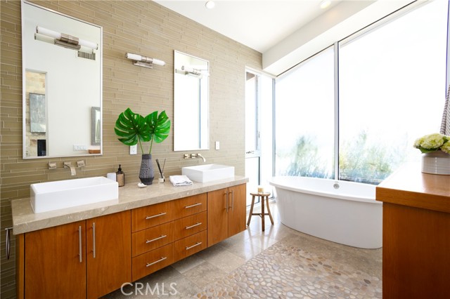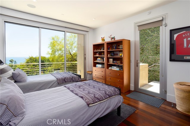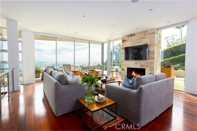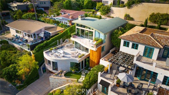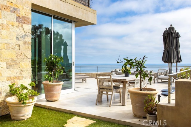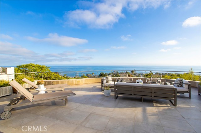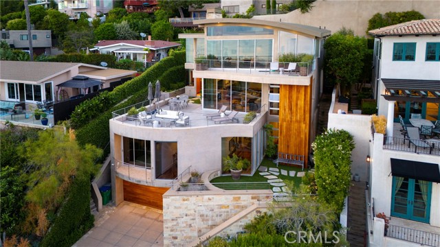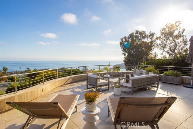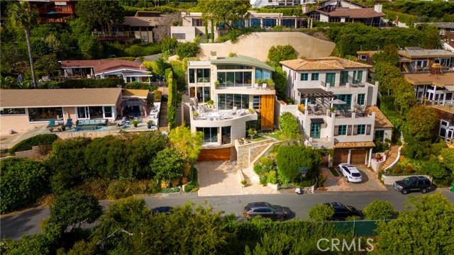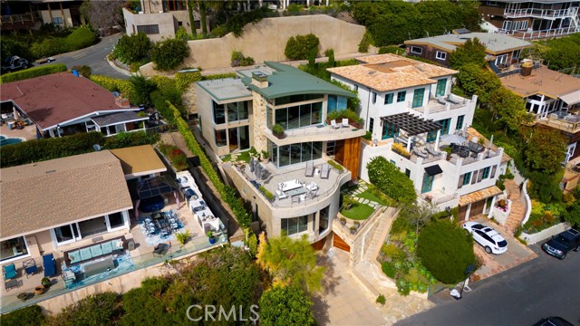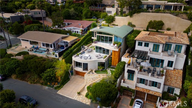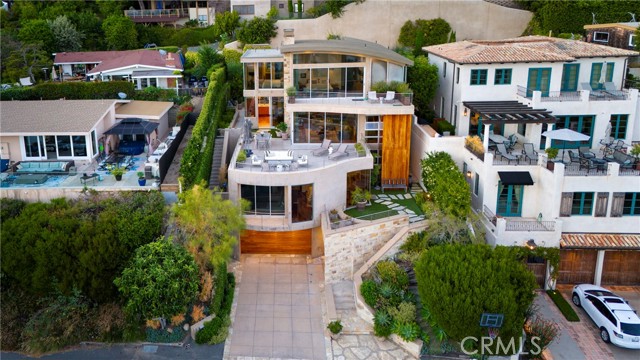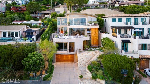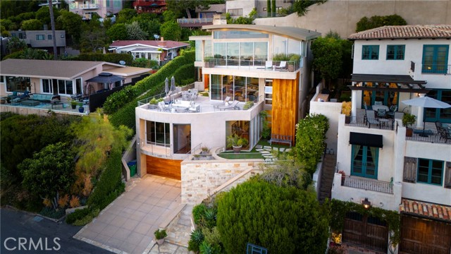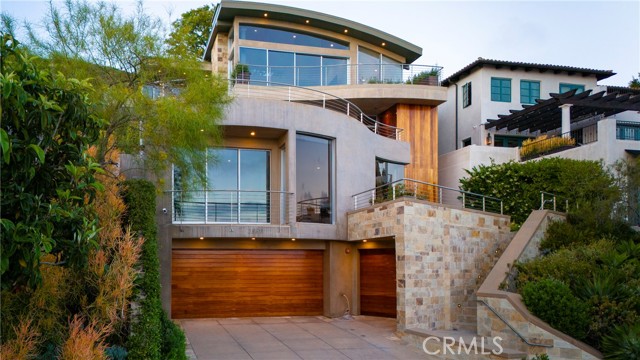 Simply stunning with panoramic ocean, coastline, Catalina, and sunset views, this soft contemporary home offers 5 bedrooms, 5 bathrooms and comfortable living spaces throughout. Designed by prolific architect Paul McClean, this house captures the essence of his signature style with the use of the surrounding landscape creating a seamless division between indoor and outdoor space; and where the ease and openness of the home doesn t get in the way of the view, it simply creates a beautiful place to live and enjoy your life. The spacious living room opens to an even larger and expansive deck with sit down panoramic views. The gourmet kitchen features high end appliances, new Taj Mahal Quartzite countertops and windows that fully open to pass through to the rear patio, a perfect setting for a summer s night barbecue or after dinner drinks al fresco. The luxurious Primary Suite features a vaulted and arched ceiling, dramatic stone fireplace, floor to ceiling glass windows and doors, another view deck to capture the magnificent views, and a beautiful bathroom with dual sinks, jetted tub and large walk-in shower. 4 additional light and bright bedrooms, one en suite, all feature ample floor and closet space. This home lives graciously on 4 levels, with the lower street level consisting of a three car garage, a climate controlled wine storage room and 2 storage closets with other abundant storage space. The entry is on the second level, along with 2 bedrooms, the laundry room and a game room. Your main living spaces are located on the third level, including the den/TV room and a full guest bath, and the top level consists of the Primary plus 2 bedrooms. There is an easement/driveway with parking above the home, off of Panorama. Other features of the home include: mahogany floors and cabinets throughout, stainless steel railings inside and out, a residential elevator that services levels 1-3, Fleetwood doors, and three zones of A/C. Luxury meets convenience in this highly coveted North Laguna neighborhood with walking distance to downtown Laguna and the beautiful beaches of Crescent Bay and Shaw s Cove; and close proximity to Crystal Cove Shopping Center, Fashion Island and Newport Center Business District, and John Wayne Airport. This home is located at the end of Sunset Ridge on a secluded cul-de-sac with only 4 homes. The privacy and tranquility of this home and property from the stunning views and the quiet location are not to be missed!Interested in this Listing?