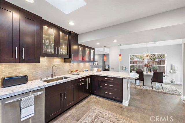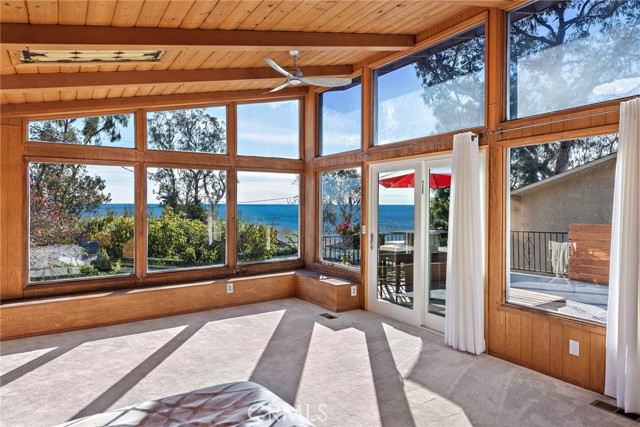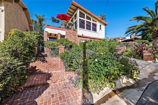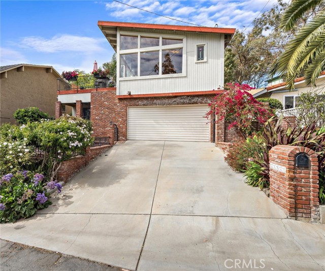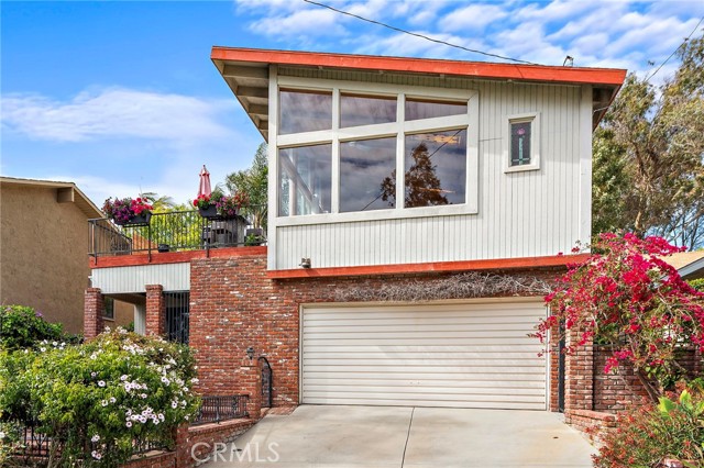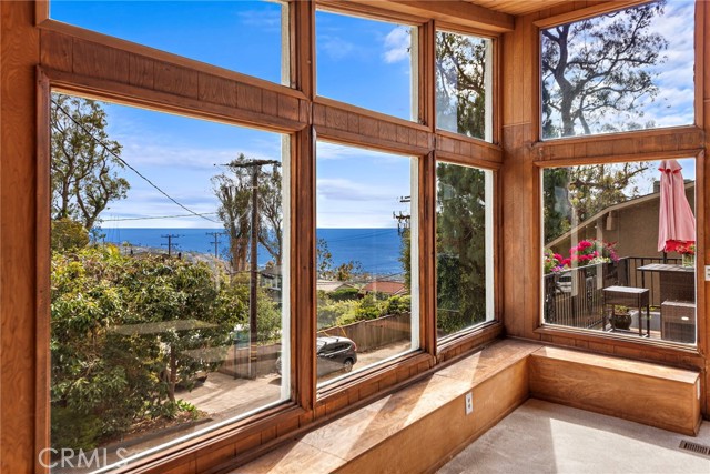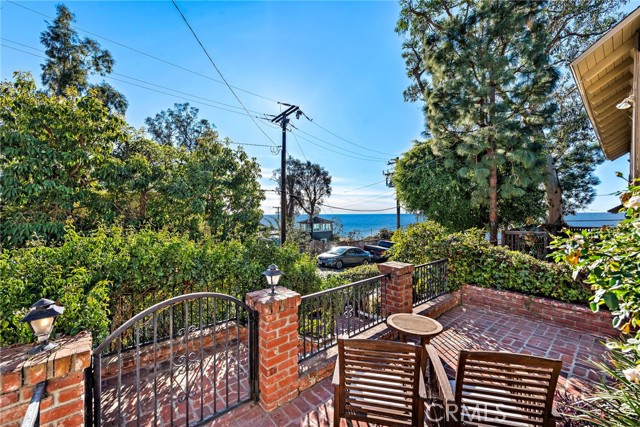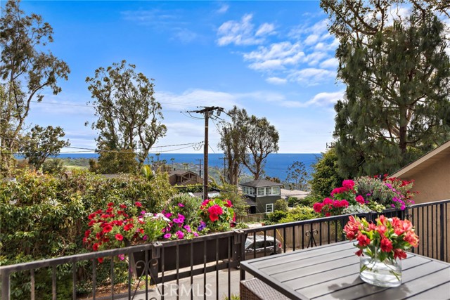 Views of the Laguna coastline, Surf & Sand resort, panoramic blue water ocean and wilderness areas are enjoyed from this home! Situated in desirable Top of the World neighborhood with proximity just yards to parks, trails and Top of the World elementary school. Come experience the serenity of private Ann's Lane, where cars rarely pass and nature envelopes one surrounded by mature trees and sunny skies. So many remodeled aspects to enjoy from your new home, including contemporary updated open concept living, dining and kitchen spaces. Modern glass paned front door leads into the inviting living room, adorned with ocean view windows, floating cabinetry and a gas burning crystal rock fireplace with smooth plaster surround. The dining room looks out to a sunny courtyard and features gorgeous starburst crystal chandelier lighting. Large kitchen appointed with stainless steel Krause oversized Farmhouse sink with gooseneck fixture, appliances including dishwasher, gas burning range and French door refrigerator freezer. Granite countertops and glass tiled backsplashes, including bar seating. Plentiful storage via custom cabinetry with stainless pulls, along with a walk-in pantry / flex room large enough for a desk space. Well designed floor plan lives mostly on one level with two sizeable bedrooms and two bathrooms. The upstairs great room can serve as a third bedroom with wall-to-wall closet storage and built-in desk. This upper level room has a wide spanning ocean view, high vaulted ceilings and slider to an ocean view deck. Additional outdoor spaces include the bright front porch and rear patio with space to dine al fresco, complete with built-in barbecue. This home features updated systems, inclusive of a whole house plumbing re-pipe, replaced water heater, furnace and air conditioning. The two car direct-access garage is conveniently off the kitchen and has a high ceiling, deep depth and additional parking provided by the two car driveway. The tree lined street is a respite from the bustle of town, yet in minutes you can transport to beaches, restaurants, shops, downtown and more. Award winning LBUSD schools from elementary to high school are all within minutes of this location. Close proximity to Aliso & Wood Canyons Wilderness Area, to enjoy the natural open space trails with extraordinary vistas of Laguna Beach. A rare offering on Ann's Lane to call your new Laguna residence.