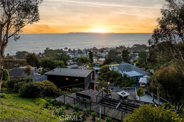 Welcome to your coastal oasis perched atop the apex of 3rd Avenue in the heart of the South Laguna Village. This midcentury masterpiece seamlessly blends custom design and exotic woods with panoramic ocean views from nearly every room on all three levels. A rarely sold retreat in one of Southern California s most coveted locales. This property is a testament to meticulous maintenance and pride of ownership. Often referred to as a park or mini ranch, the expansive lot offers endless opportunities to continue building and adding on. Lush greenery, an outdoor fireplace and three large ocean view decks invite you to indulge in captivating ocean sunsets, both Catalina and San Clemente Islands, sailboats, and occasional whale and porpoise discovery! On the clearest days, you will experience views up the coast to Long Beach and Palos Verdes. As you step through the custom-made door and enter on the middle level, you will immediately be captivated by the endless ocean vistas that welcome you. This level boasts a thoughtfully arranged bedroom, a stylish bathroom, and a kitchen that opens seamlessly to a large ocean-facing deck ideal for alfresco dining or simply soaking in the coastal ambiance. The living room, complete with a fireplace and a charming dining nook, make this level a perfect space for both relaxation and entertaining. Ascend upstairs to discover the ultimate in luxury living the primary suite. With privacy, breathtaking ocean views and custom wood features, this retreat is a haven of tranquility. Venture downstairs to find an inviting office space, an additional bathroom, and a bedroom that opens up to an ocean-facing seating area, creating a flexible and dynamic living environment.Interested in this Listing?
