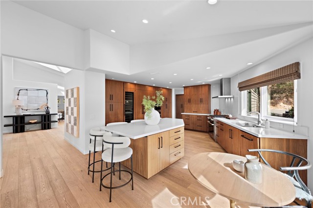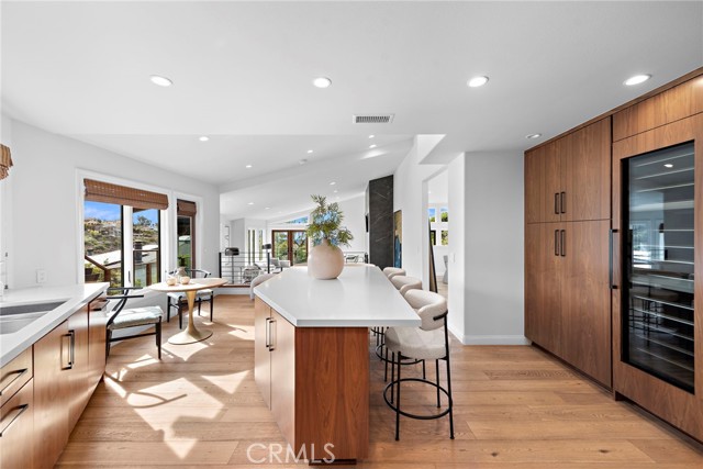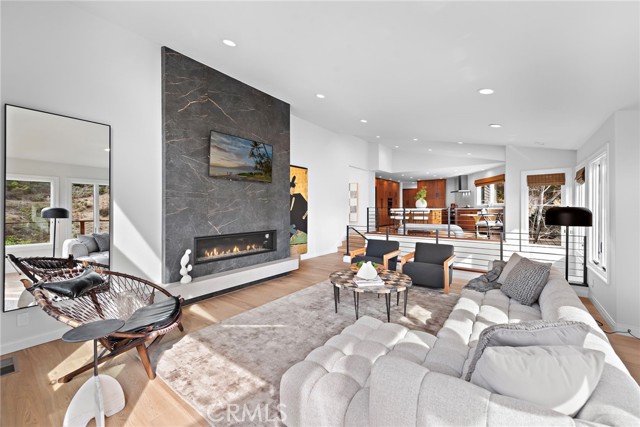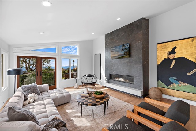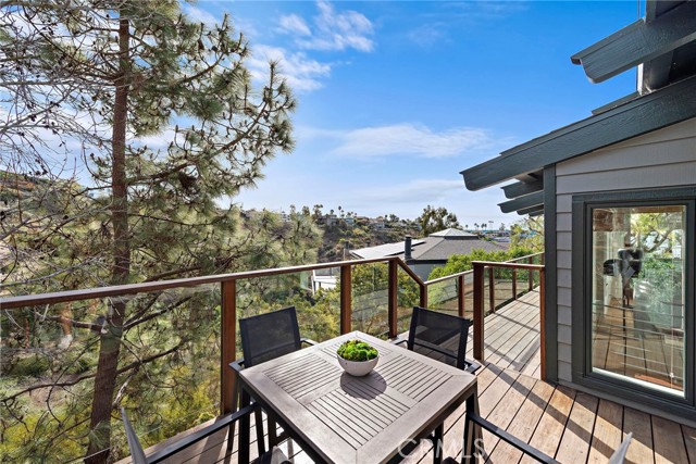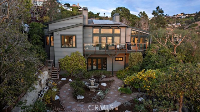 Stunning Soft-Contemporary Residence with Ocean Views in Laguna Beach Nestled above downtown Laguna Beach on a tranquil cul-de-sac, this breathtaking soft-contemporary home offers the perfect blend of elegance, comfort, and functionality. With sweeping ocean, canyon, and Island views, this thoughtfully designed residence is ideal for both daily living and entertaining, while offering ample space for multi-generational use. Upon entering, you ll be greeted by soaring vaulted ceilings, an abundance of natural light, and an open floor plan with light oak floors and skylights, creating an inviting atmosphere for art lovers and design enthusiasts alike. The entry-level primary suite serves as a private sanctuary, offering panoramic ocean views, a cozy fireplace, and a spa-inspired bath complete with a steam shower, spa tub, and a walk-in closet. Also on this level, an executive office with double-door entry and an additional ensuite bedroom provide versatility and ease of living. Designed with entertaining in mind, the home boasts a formal dining area, a spacious living room with a fireplace, and a gourmet kitchen featuring premium Miele appliances, a wine refrigerator, steam oven, 6-burner gas range, center island, and a sun-drenched dining nook. The adjacent family room, with its vaulted ceilings and inviting fireplace, opens seamlessly to a large wrap-around deck creating the perfect setting to enjoy the stunning coastal beauty of Laguna Beach. The lower level of the home features high ceilings, two generously sized ensuite bedrooms, and a versatile oversized bonus room with private exterior access, ideal for a media room, home office, or guest retreat. Step outside to the beautifully landscaped backyard, complete with a tranquil fountain, fruit trees, grapevines, and lush gardens perfect for enjoying peace and privacy. Modern amenities include solar panels, a water filtration system, dual-zone heating, air conditioning, an alarm system, interior laundry room with sink, and a three-car garage with direct interior access. This pride of ownership home offers easy access to award-winning schools, scenic hiking and biking trails, tennis and pickleball courts, and the vibrant arts, dining, and cultural scene of downtown Laguna Beach. A rare opportunity to own in one of Laguna Beach's most coveted locations, this private sanctuary epitomizes coastal luxury, combining inspired design, seamless indoor-outdoor living, and unparalleled comfort.Interested in this Listing?