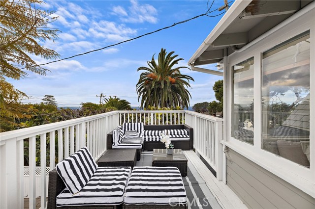Introducing an enchanting Victorian-style gem with ocean views and just a leisurely stroll from the beach. This two-story home features three bedrooms and two baths, radiating charm with its classic hardwood floors and cozy fireplace. The main level extends effortlessly to a large, flat rear yard, ideal for relaxing afternoons, while the spacious upper-level deck offers panoramic ocean views perfect for entertaining or unwinding in the coastal breeze. The kitchen boasts granite countertops and is open to adjacent dining area. Newer split system air conditioner and heater for upper and lower levels. In addition to the 2 bedrooms upstairs there is a spacious den/office area with wonderful ocean views. Newly painted, with new driveway and professionally staged this home sparkles and awaits the next generation owner. This is zoned R2 and with an ADU could be legally 3 units. Large 2-car garage could be converted to an ADU for a separate apartment, home office or in law unit. The property includes a two-car garage and ample driveway parking, ensuring convenience for both residents and guests. Situated a mere 0.2 miles from Crescent Bay Beach and Shaw's Cove, and just 0.8 miles from Main Beach, this home is ideally located for beach lovers. For those looking for easy access to local amenities, the Laguna Beach Trolley stops just a block away, ready to whisk you to world-class shopping, dining, and the stunning beaches Laguna Beach is renowned for.Interested in this Listing?