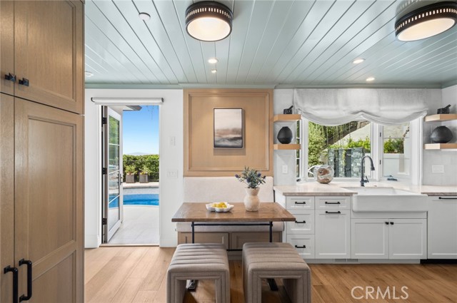 History meets modern luxury at this one-of-a-kind coastal retreat pool home in Laguna Beach with breathtaking ocean views, where an extensive complete renovation was completed in 2020. Offering unparalleled privacy and panoramic coastal vistas from every room, this estate sets a new standard for sophisticated coastal living. Spanning 180 of ocean, Catalina and sunset vistas from its setting at the end of a cul-de-sac that is an easy stroll to Victoria Beach and the Montage Resort. Christened Ciela del Mar Heaven of the Sea, by the original owner/inventor in 1937, the property is meticulously designed and rebuilt with top quality while leaving an irreplaceable uniqueness in certain maintained historical enhancements. A living area defined by white oak beamed ceilings, a wood-burning fireplace and panoramic ocean vistas is the heart of the home. The main room opens to a large limestone patio with a saltwater pool and spa overlooking mesmerizing ocean vistas, all with complete privacy in an ambiance embellished with special lighting, multiple fountains and an outdoor shower. Discover bespoke amenities, including Paul Ferrante custom lighting, a Control4 smart-home system, integrated speakers, advanced security features, whole-house water purification, and custom alder wood doors and windows throughout with custom shades and draperies. An elevator connects all levels, ensuring effortless access throughout the home. Kitchen includes a Wolf range, Sub-Zero refrigerator, Miele dishwasher and quartzite countertops, while the dining room hosts a temperature-controlled wine cellar and opens seamlessly to a protected patio via a full-wall glass pocket door. Enjoy hosting outdoor dinner parties with heaters, an enchanting original stone fireplace, beautiful plantings and a jasmine trellis creating the ideal atmosphere. Perfectly arranged, the floor plan lives like a single-story design with a secondary primary suite and an office on the main level. The top floor reveals a private primary retreat with lofty ceilings, ocean views and a fireplace. The primary bath shines with marble finishes, a luxurious ocean-view steam shower, and a large walk in closet. An attached two-car garage with ample guest parking will make all feel welcome. This meticulously designed home is just moments away from restaurants, galleries, resorts and Laguna Beach's village. Schedule your private tour today and embrace this truly unique property representing the pinnacle of coastal living.Interested in this Listing?