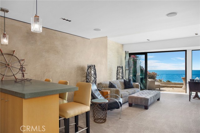 Cima Della Roccia: a Laguna Beach oceanfront Mark Singer A.I.A.-designed residence with expansive ocean, Catalina Island, and sunset views set atop a bluff in Victoria Beach - one of the most desirable enclaves of Southern California. Sited with intention to fully capture the endless Pacific vistas, this contemporary, approximately 5,342 square foot, five-bedroom offering with multiple outdoor spaces is nestled in a quiet part of the neighborhood yet just minutes away from the area s local restaurants and galleries. Down the floating staircase just beyond the private entryway lies a dramatic double-height great room framed by a wall of windows. Anchored by a standalone fireplace, a sitting area, a large dining section, a discreet wet bar, and the home s kitchen with super-grade finishes as well as an oversized island create a harmonious entertaining space. Positioned to capture ocean views from every angle, this sun-drenched level extends to the outdoors via a courtyard patio on one end and a spacious terrace on the other. A bedroom currently used as an office completes this floor. The upper level is comprised exclusively of the water-facing owner s quarters, with the primary ocean-view bedroom, bathroom, balcony, and dual closets occupying its entirety for ultimate privacy. The lower portion of this residence presents a secondary gathering area with a wet bar and a large oceanfront patio with a fire pit. Serene ocean vistas can be enjoyed from two of the three guest bedrooms on this level. Featuring the highest-end elements, including steel, poured concrete, and natural stone, this dramatic modern home features an elevator, smart home automation, and a two-car garage. An iconic yet convenient location within Laguna Beach with the city s restaurants, golf courses, boutiques, world-class resorts and beaches just a stone s throw away.Interested in this Listing?