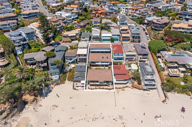 Forever in a league of its own, this magnificent oceanfront home is located directly on the sands of Victoria Beach in Laguna Beach. Its unobstructed ocean views will elevate every aspect of your life. From relaxing and kicking back with friends to hosting a grand celebration, the extensively upgraded residence impresses with a stunning backdrop of breathtaking whitewater, Catalina Island, sunset, and evening-light views that change from moment to moment. Embraced by an extra-large lot of nearly 10,000 square feet with a rare 60 feet of beach frontage, the multi-residence compound features a main beachfront home with four bedrooms and four baths, and two separate homes with two bedrooms and two baths each, for a total living area of approximately 5,112 square feet. Complete with full kitchens and living areas, the separate units can be used for relatives, guests, and/or rental opportunities. A spacious and private terraced patio separates the upper-level guest homes from the sand-level main home and features a fireplace and built-in BBQ island. Retaining elements of its original 1963 vibe, including large ocean-view windows, open living areas, and vaulted tongue-and-groove ceilings, the main home boasts many of today s most sought-after appointments. A stunning modern fireplace with natural stone and dramatic angles embellishes a great room that opens to a deck overlooking the beach via a wall of slide-away glass doors. The kitchen, living, and dining rooms also showcase ocean views, with the dining room occupying a prime bay-window setting. White cabinetry with glass uppers, waterfall-edge countertops, two bars, and high-end appliances adorn the kitchen, which is equally ideal for entertaining and mealtime preparations. This level s primary suite opens to the central patio and reveals a luxurious bath with a jetted tub and oversized shower. On the lower level, a secondary primary suite joins a living area with a walk-in wet bar. A five-car detached garage is located at street level.Interested in this Listing?