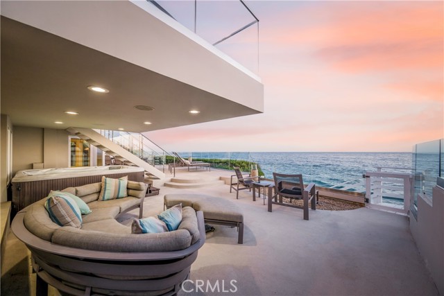 Perched immediately above the sand, just south of the Montage Resort, this exceptional contemporary residence features direct access to Aliso Beach just beneath via a private staircase. The impeccably appointed interior spans approximately 4,300 square feet and affords commanding panoramas of the Pacific Ocean from both levels. Coastal design elements blend with striking architectural lines, creating a sophisticated yet soothing atmosphere. Enveloped in glass, the main floor is comprised of a state-of-the-art SieMatic kitchen open to the dining section and the home s living area which flows to a spacious deck. Focus on the ocean vistas extends into the primary suite on this level, a tranquil and luxurious sanctuary. Two additional ensuite bedrooms and a powder room round out this floor. A secondary gathering space can be found downstairs where a living room, a home bar, and walk-in wine cellar create the ultimate area to unwind in. A home gym and a multipurpose den complement this well-designed property. An extension of the high-end interiors, the lower deck features several sitting areas, a built-in BBQ, a hot tub, and direct beach access. An expansive lot allows for plentiful driveway parking in addition to the three car garage. The rarity of the combination of a coveted South Laguna Beach location, level of design, and breathtaking ocean views cannot be overstated.Interested in this Listing?