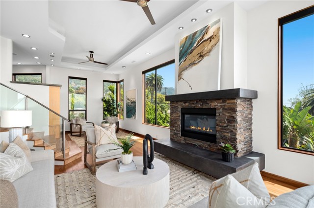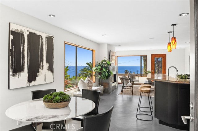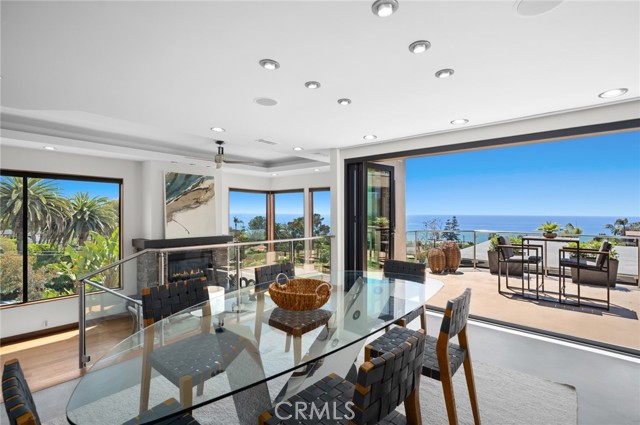 Set on a prime corner in South Laguna, this 4-bed, 4.5-bath home combines luxury living with coastal charm. Just moments from the beach, it s ideal for buyers seeking sweeping ocean and canyon vistas, privacy, and refined living. Inside, soaring ceilings, polished floors, and an expansive layout set the stage. Floor-to-ceiling windows, accordion-style glass doors create seamless indoor-outdoor flow while framing captivating views of the Pacific and surrounding tree-lined streets enhancing the home s serene coastal vibe. The grand living room offers two distinct seating areas, positioned to enjoy panoramic ocean views from sunrise to sunset. The gourmet kitchen features a spacious island with five-burner cooktop, premium Thermador appliances including a double oven and warming drawer a walk-in pantry, and generous space for both casual and formal dining. The primary suite serves as a luxurious private retreat, with direct access to an ocean view deck the perfect way to start your day. The spa-inspired bathroom includes dual vanities, freestanding soaking tub, walk-in closet, and a multi-jet body spray shower. A dedicated media room sits adjacent to the bedrooms, outfitted with a mounted 75-inch TV and immersive surround sound ideal for movie nights or relaxed entertaining. Two additional en suite bedrooms on the same level offer comfort and flexibility for family or guests. Step outside from the media room to an entertainer s dream. This open air retreat features a 17-foot island with stainless steel BBQ, refrigerator, bar sink, and abundant storage. A full-size freestanding gas fireplace adds warmth and charm, while pristine landscaping and a majestic 150-year-old Dragon Tree create a tranquil backdrop. A private, separately accessed apartment adds valuable flexibility, featuring a full kitchen with brand new appliances, a spa-like bathroom, a spacious bedroom with walk-in closet, a cozy living room with fireplace, private laundry, and a secluded patio ideal for guests or rental income. Additional highlights include a four-car garage with extra driveway parking, built-in cabinetry, workbench, LiftMaster system, and network-ready ports. The home offers central A/C, solar panels powering the entire property, LifeSource water system, laundry room. With it's open layout, sweeping views, and walkable location near Valido Trail, West Street Beach, Table Rock Beach and world-class resorts, this home delivers unmatched comfort and elegance.