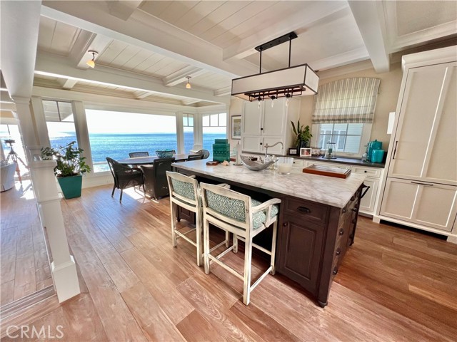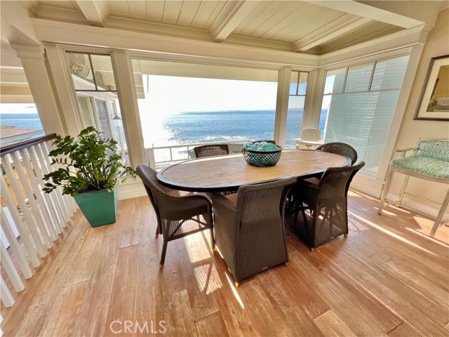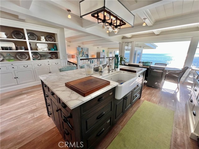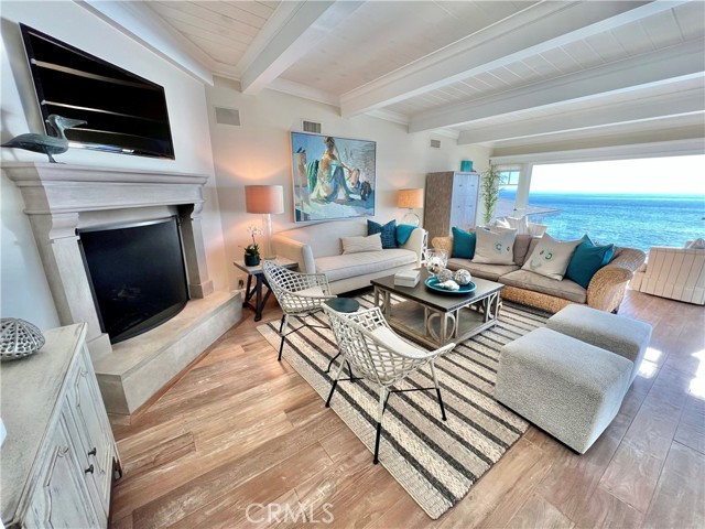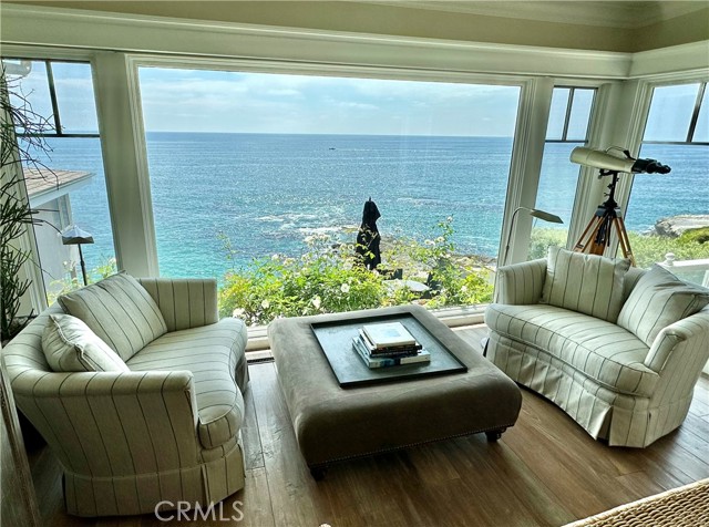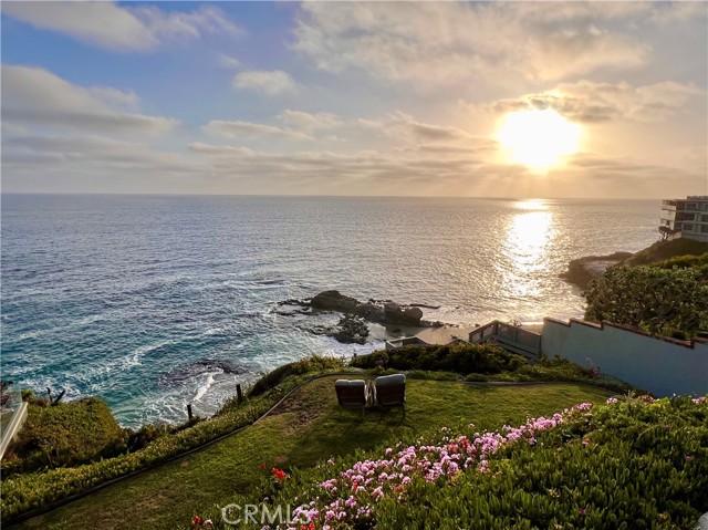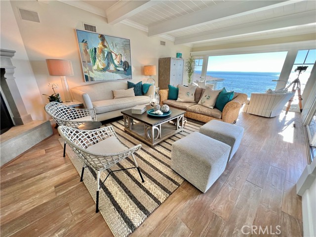 OCEANFRONT, Direct Beach Access home overlooking Seacove Beach with panoramic views of the crashing surf below. Inspired by the Coastal Homes of Sag Harbor and the Hamptons, this 3 bedroom, 3 1/2 bath Beach House is fully remodeled and beautifully appointed with all designer selected furnishings included for a turnkey purchase. Generous living and dining areas open to oceanfront patios and an expansive yard with BBQ and outdoor entertaining areas. The mostly flat (nearly quarter acre) lot cascades down to the sand with lovely garden and grass-yard areas, perfect for lounging and sea-gazing. This "beachy-chic" home features a chef's kitchen with bar seating and offers an authentic culinary experience with high-end appliances, an Italian stove, a center island, and plenty of workspace for informal or formal dining service. Three bedrooms with designer finishes and full baths complete the main level. An office area and another bathroom with a step-in shower are conveniently situated at the front entrance. This quintessential oceanfront Beach House is ideal for primary or second home living and also features a two-car attached garage and Central AC. The South Laguna Bluffs location, at the end of a quiet cul-de-sac, is just steps from the South Laguna Village area, with access to the shops and restaurants and just five minutes from downtown Laguna Village galleries, entertainment, and art festivals. This is a must-see home!Interested in this Listing?