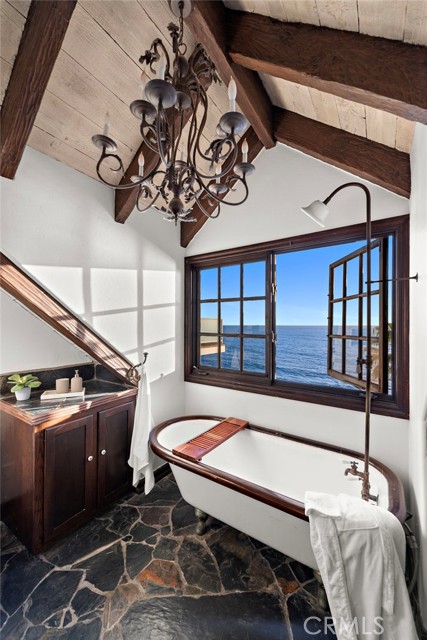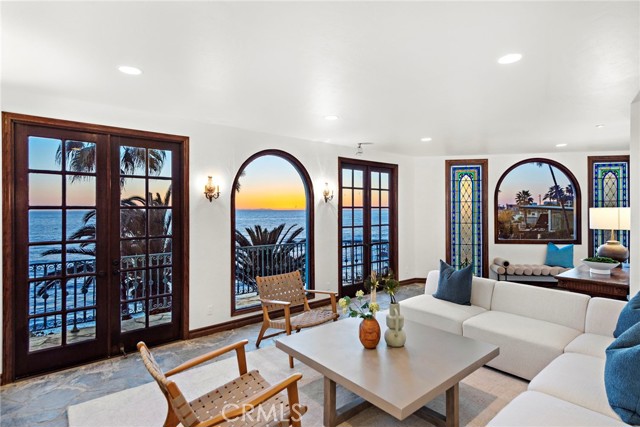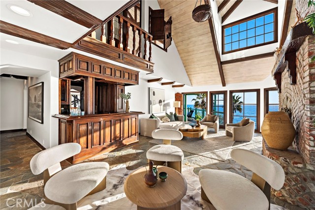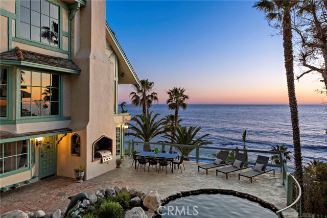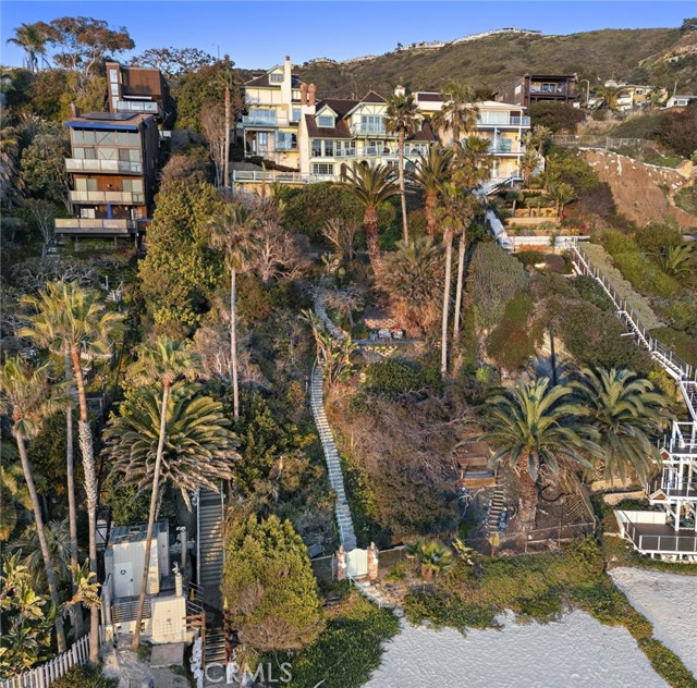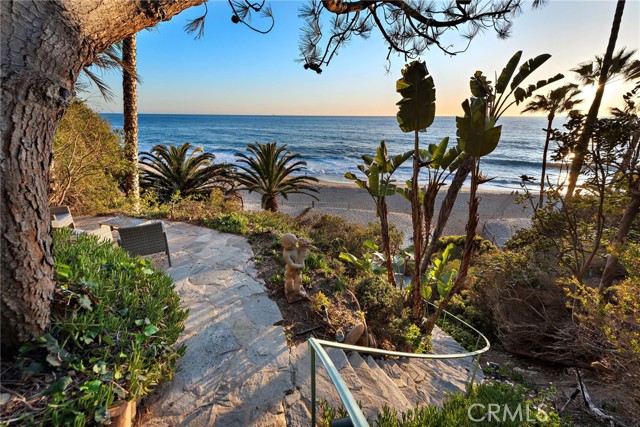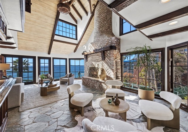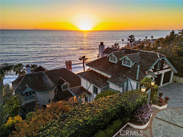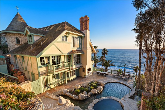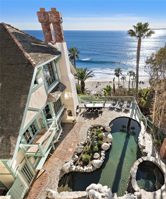 Welcome to "The Sea Castle", a stunning oceanfront compound offering panoramic views of the shoreline and Pacific. Spanning over half an acre, this enchanting property features direct beach access, lush grounds and a resort style pool and spa. This unique property consists of a primary residence expanded and redesigned in 1985, pool side guest quarters and a contemporary guest unit built in 1994. Stone garden pathways or a convenient funicular lead to the main residence. The Sea Castle is a masterpiece of craftsmanship highlighted by a stone turret, diamond patterned windows, and a distinctive shingled roof inspired by ocean waves. Inside, stone floors, an elegant floating staircase, and soaring beamed ceilings create a timeless ambiance. Natural lighting and picturesque ocean views immerse the living spaces. The grand living room exudes warmth with open beamed ceilings, a curved brick fireplace, clerestory windows and French doors opening to a spacious terrace. A formal dining room with handcrafted custom built-in provides an intimate setting for large gatherings, while the kitchen showcases inlaid wood cabinetry, a vintage Range, a dining nook and butlers alcove. The private primary suite offers an ocean view deck, fireplace, wet-bar, dual bathrooms and a walk in closet. Additional highlights include a large loft style office with built ins and ocean views, an inviting oversized family room with ocean views and 2 thoughtfully designed main level guest rooms. A private pool side guest quarters offers a living area with ocean views, a fireplace and sleeping area with ensuite bath. A separate second residence provides a contemporary coastal design with high ceilings, abundant natural light, 3 bedrooms (two ensuite), a den and ocean view patios. Outdoor spaces elevate the oceanfront lifestyle with multiple terraces, black-bottom pool and spa, and a pathway leading to the sandy paradise of Thousand Steps Beach where you can launch your sea kayak or paddleboard. The carriage house styled oversized three car garage features ample storage and an enviable motor court for additional off-street parking. Perfectly suited for multi-generational living, hosting guests, special events, or your very own private retreat. The Sea Castle Estate is a rare offering that captures the essence of the most coveted oceanfront living in Laguna Beach. A property of this caliber is seldom available. Experience the luxury, legacy and lifestyle of this one of a kind opportunity.Interested in this Listing?