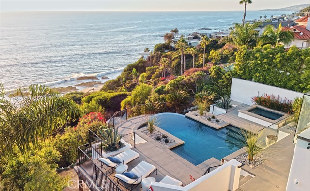 Perched majestically on a half-acre oceanfront bluff overlooking the beautiful Southern California coastline, 32101 Coast Hwy embodies the epitome of luxury Laguna Beach living. This stunning estate features panoramic white water, ocean, Catalina Island, sand, and coastline views. A one-of-a-kind home, it has been completely remodeled to the highest quality. A large bluff-top infinity pool with spa and pool house boast panoramic vistas: an architectural rarity that would never be approved if submitted today. This home was transformed into a contemporary Santa Barbara-style masterpiece by renowned architect James Conrad. Upon entry, the sprawling main level open floor plan immediately captivates with stunning panoramic ocean views. The main level features a spacious living room, dining room, gourmet chef's kitchen, powder room, luxurious primary suite, and magnificent outdoor decks all designed to maximize natural light and ocean vistas. The seamless flow extends to the lower level, where a large family room opens onto the expansive deck overlooking the pool, spa, and ocean. The lower level features three bedrooms, three bathrooms with immaculate tile work, spacious laundry room, and direct access to the pool deck, seamlessly blending indoor and outdoor living. Additional interior touches include incredible custom tile flooring, with ceilings featuring white oak beams and tongue & groove design. Moving outside, lush landscaping and a fully remodeled pool, spa, and waterfall delight the senses. Additionally, the pool house features a beautiful bathroom and bar. New roofing strategically integrates solar panels into the shingles. Three new sets of pocket doors and exterior steel doors with marine-grade finish, plus a brand-new Euroline steel front entry door complete the picturesque appearance. Every detail of this virtually brand-new home has been meticulously curated. The extensive three-year renovation included structural enhancements, updating the plumbing, electrical, & HVAC with state-of-the-art systems, and installation of top-quality windows. For a turnkey experience, the brand new elegant furnishings are available for purchase. 32101 Coast Hwy not only offers a luxurious residence, but a lifestyle characterized by coastal serenity and sophistication. Ideal for those seeking the ultimate in beachfront living, this property invites you to experience the pinnacle of Laguna Beach's coastal charm and beauty. Your one-of-a-kind coastal oasis awaits!Interested in this Listing?