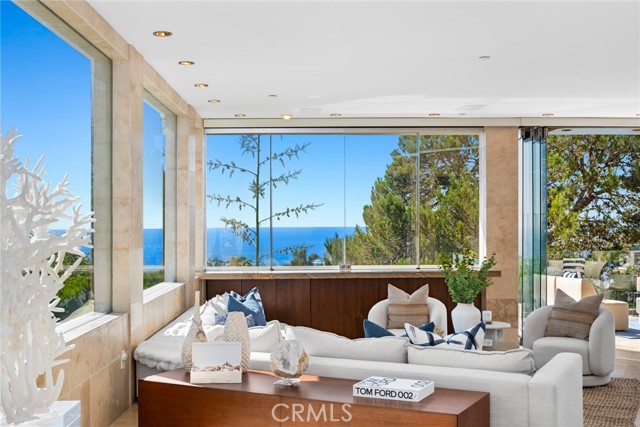 Stunning northern-coast views looking toward Emerald Bay, the Pacific Ocean and whitewater vistas are framed by evening lights at this enviably private custom home in coveted and prestigious north Laguna Beach neighborhood. Set beyond a gate, the modern residence reveals a dramatic entrance with long turf-and-concrete driveway for ample onsite guest parking in addition to a two-car garage. Mature landscaping enhances privacy and creates a lush, verdant retreat that perfectly complements upscale carefree living. Frameless floor-to-ceiling windows, folding walls of glass and brilliant skylights bathe the two-level design in radiant natural light, and large-format stone-tile floors add warmth to most living areas. Approximately 2,528 square feet, the open floor plan places main living areas on the first level, and, for maximum privacy, two ensuite bedrooms and a third space currently featured as a bedroom with private bath on the lower floor. Taking full advantage of stunning ocean views, the living and dining rooms open to an expansive deck that generously caters to outdoor dining and entertaining with friends and loved ones and erases the line between indoor and outdoor living. Showcasing custom wood cabinetry and high-end style, the home s chef-caliber kitchen presents a large island, stone countertops, a cabinet-matched built-in refrigerator, and top-of-the-line stainless appliances. Both levels offer an impressive indoor/outdoor flow, with the lower floor featuring access to a magnificently landscaped private yard and a spacious loggia that extends living space outside. With lofty ceilings and generous space, the ocean-view primary suite opens to an enchanting garden and hosts a sitting area, walk-in closet, and a private and airy bath with walk-in shower. Close to Crescent Bay Beach, the home is moments from Laguna Beach s vibrant tapestry of village shops and restaurants, famous galleries and romantic coves. From candle-lit evenings on the deck overlooking the ocean to daily relaxation and living, this distinctive and welcoming residence will bring you endless enjoyment.Interested in this Listing?