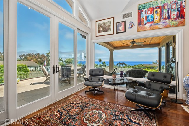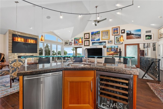 North Laguna Oasis with Panoramic Ocean Views. Welcome to 535 High Dr. this coastal luxury home perched to capture stunning ocean views and nestled in lush garden spaces perfect for entertaining in serene privacy located in one of Laguna's most coveted neighborhoods. This home offers a rare blend of privacy, natural beauty and refined living. Enter the large gated stone courtyard from the Hawthorne side of the property to the sound of the trickling water feature and lush garden spaces step inside to discover the harmonius fusion of contemporary elegance and coastal sophistication. With soaring ceilings, fireplace, Brazilian cherry wood floors and sun drenched interiors, the open concept great room flows effortlessly onto an expansive deck ideal for entertaining or basking in the ocean breeze. It also features a chef-caliber kitchen with custom cabinetry, stone counter tops, center island complimented by a glass-art shelf for entertaining, state of the art appliances, new Thermador double ovens and cooktop, two Bosch dishwashers, wine refrigerator, warming drawer and reverse osmosis water filter. The home features three ensuite bedrooms, including two spacious primary suites. One on the main level that opens to the large deck features a walk in closet, spa shower and heated bath tub. The second primary on the lower level is complete with it's own fireplace and opens to the lower stone patio with a fire pit and fountain. The spa-inspired baths finished with the finest of materials are designed for comfort and privacy to elevate everyday living to a luxurious retreat. The lot is totally enclosed with a private gate that enters the driveway from the alley to the oversized two car garage with built-in storage, air conditioning and a Tesla charger. The driveway can be used as part of the lower patio for entertaining in total privacy. Located just moments from iconic beaches, Heisler Park, Riddle field and close to town, shopping and world-renowned festivals, this is more than a home-it's a lifestyle.Interested in this Listing?