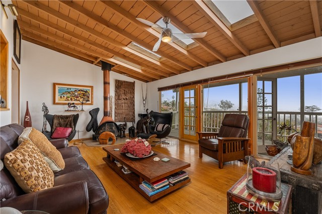 This four-bedroom, three-bathroom home in Lower Mystic Hills, Laguna Beach offers breathtaking ocean and city lights views, with Main Beach s waves visible in the distance. Conveniently located near Laguna Village, it provides easy access to shops, restaurants, and local amenities.Designed for multi-generational living, the property features two bedrooms and two bathrooms upstairs, alongside the kitchen, dining, and living areas, while the lower level includes two additional bedrooms, one bathroom, and a second kitchen, dining, and living space.The mid-century modern architecture is highlighted by natural wood beams, high ceilings, and tall glass windows, creating a bright and airy atmosphere. Additional features include air conditioning units on both levels, a spacious backyard with a built-in barbecue, and a quiet lot with two historical homes below offers privacy and tranquility, complemented by the refreshing coastal breeze.The over 7,000 square foot lot includes a 35-foot retaining wall and room for an ADU, providing potential for extra living space or rental income. A large laundry room with ample storage space and a unique bonus room excluded from the square footage add even more flexibility, perfect for a home office, gym, or creative space.This is a prime opportunity to craft your ideal coastal retreat in one of Laguna Beach s most desirable neighborhoods.Interested in this Listing?