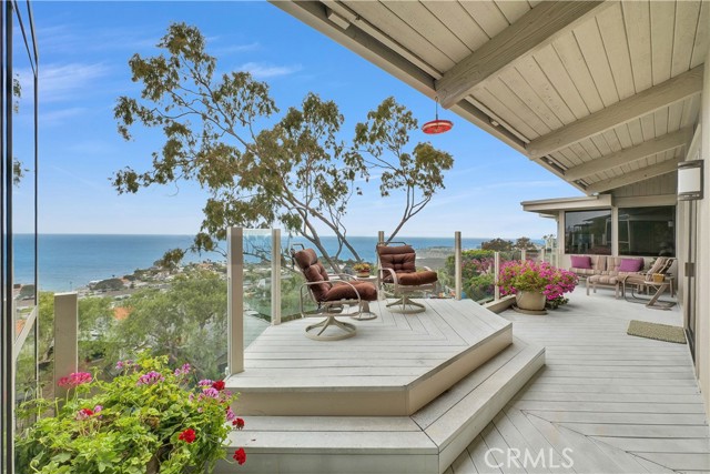 A Rare Gem in North Laguna with Unmatched Ocean Views! Opportunities like this are few and far between. A stunning home situated on a flat, quiet cul-de-sac in coveted North Laguna, offering unobstructed 180-degree ocean, coastline, and city views. This exceptional property blends casual coastal elegance with the relaxed charm of beachside living. Enter through a beautifully landscaped courtyard featuring a rustic fountain designed by local artist Dan Skaggs, lush tropical foliage, and a serene ambiance that sets the tone for what lies beyond. Inside, you're immediately greeted by panoramic views of the Pacific and endless blue skies. The kitchen features a glass sunroom dining area with a surround view that invites you to start your day with breathtaking scenery. Spanning two levels, the home boasts expansive balconies on both floors, perfect for entertaining or unwinding with a glass of wine at sunset. The main level offers a spacious private suite with it s own sitting area and a full bathroom, a second bedroom and full bathroom, alongside a gorgeous living room that flows into a cozy conversation space with a double-sided fireplace and wet bar, all overlooking the ocean. Downstairs, the primary suite is a private retreat, complete with a large ocean-view deck, a jacuzzi on the deck, a generous walk-in closet, and a spacious en-suite bath. A fourth bedroom and a full bathroom has been added and beautifully renovated, both permitted, with its own separate entrance, which allows for it to be used as a separate guest room. Additional highlights include a solar energy system, ample street parking, 2 car garage, new roof, new furnace, and more. This is a beautifully upgraded and move-in ready home with the flexibility to personalize or transform into your dream luxury estate. Located just minutes from Heisler Park, amazing hiking trail, world-renowned beaches, top-rated schools, fine dining, art galleries, and The Ranch golf course, this property exemplifies the best of exclusive Laguna Beach living.Interested in this Listing?
