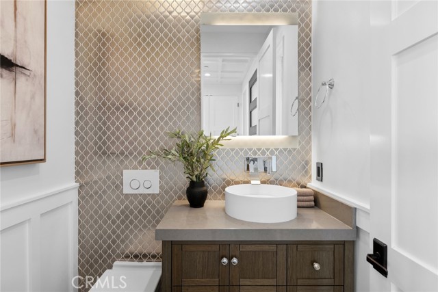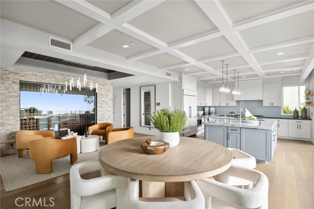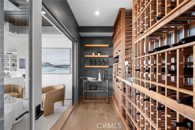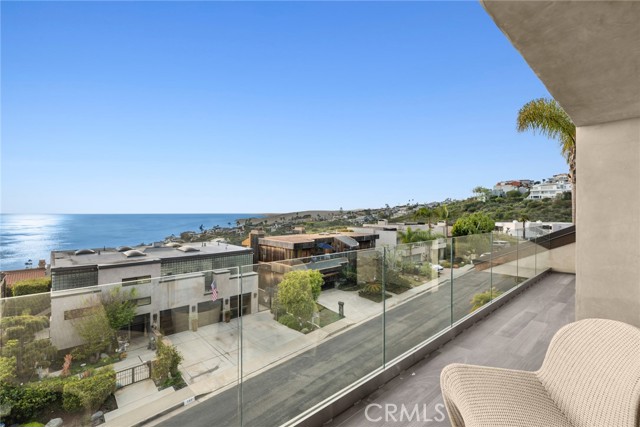 Nestled near the end of a peaceful cul-de-sac in Laguna Beach s desirable Portafina enclave, this stunning custom home is a true oasis offering exceptional privacy and unparalleled ocean views. Flashing sparkles of light reflecting off the Pacific Ocean, Catalina Island s iconic silhouette, and city lights twinkling after sunset are just some of the captivating visual delights that you will enjoy. Extensively remodeled and expanded, the modern showplace captures views from indoor and outdoor living spaces. Extending approximately 3,315 square feet, a phenomenal floorplan with four ensuite bedrooms and four- and one-half baths provides an impressive flow that accommodates easy entertaining, all with the ocean as a gorgeous backdrop. The main level is introduced by a large living room with vaulted ceiling and a stacked-stone fireplace flanked by custom built-ins. Walls of slideaway glass doors open this level to a generous heated deck where friends and loved ones will savor ever-changing ocean views. A lounge and glass-enclosed temperature-controlled wine room set the tone for elegant dinner parties in the dining room, which transitions seamlessly to a fabulous island kitchen. Chefs of all skill levels will appreciate the style and functionality of abundant Shaker cabinetry and stone countertops. A built-in refrigerator displays cabinet-matched panels, while a built-in coffee station is joined by a six-burner Wolf range and double oven. Truly one of a kind, the residence offers an elevated design aesthetic that is destined to stand the test of time. Wood flooring, coffered ceilings, designer lighting fixtures and top-tier finishes and millwork are showcased throughout. Guests will feel at home in a main-level bedroom that offers the convenience of flexibility. For the ultimate escape, the fireplace-warmed primary suite opens to sweeping ocean views on a private deck and reveals a sitting room and two walk-in closets. An oversized rain shower and a soaking tub enrich the primary bath. On par with the interior, the exterior of the home is exceptional. Curb appeal is redefined with impeccable landscaping and custom front-yard hardscaping. Parking for four is accommodated with two driveway spaces and a two-car garage. Victoria Beach and Woods Cove are nearby, and resorts, restaurants and shopping are minutes from home. Your dream of sharing a home of this caliber with the people you love can come true at this extraordinary Laguna Beach residence.
