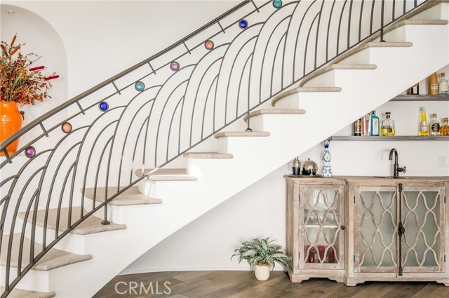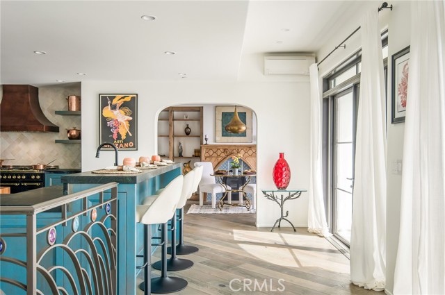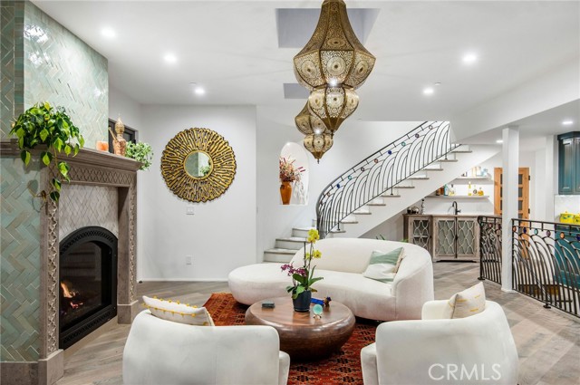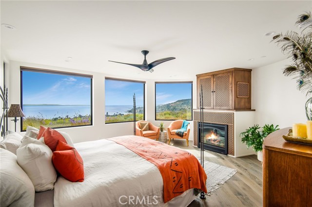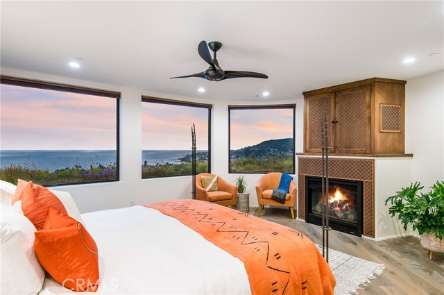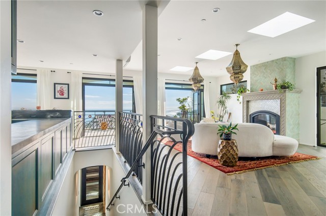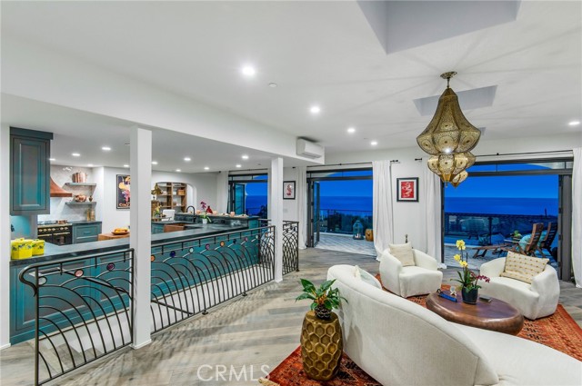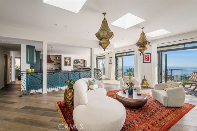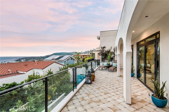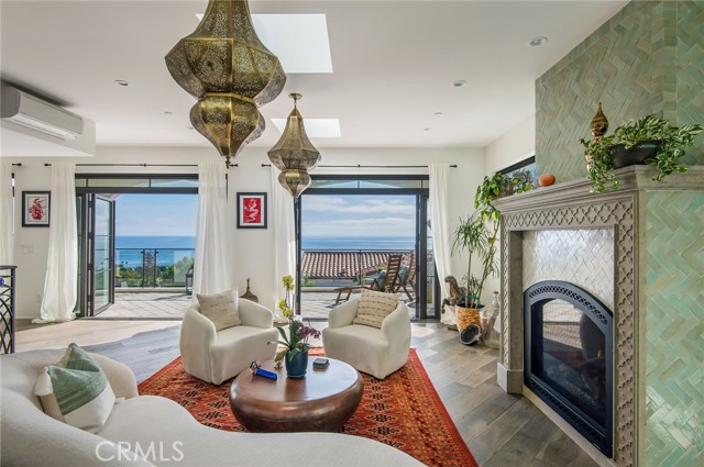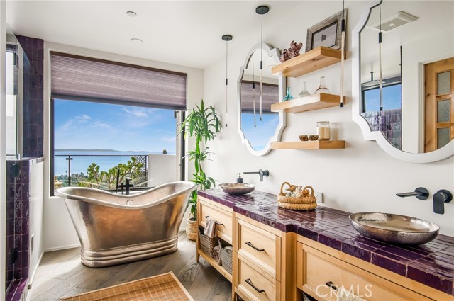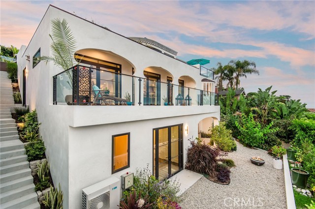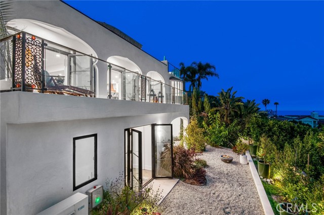 Panoramic ocean views take center stage at this new construction residence with contemporary Moroccan features in Temple Hills. Masterfully blending interior spaces with the outside, this property features multiple outdoor living areas for year-round enjoyment. The primary suite, on the uppermost floor, has oversized windows overlooking the gorgeous living/green roof with views of the ocean, Catalina Island and Main Beach. This luxurious space includes a fireplace, ensuite bathroom with large walk-in shower, and a freestanding tub. The adjacent balcony is the perfect spot to watch the sunset and city lights. The middle level is accessed via a curved staircase, with custom iron work and hand blown glass by local artisan, is perfect for entertaining with wet bar and multiple French doors to the spacious balcony. This ocean-facing living area, accented by skylights and Moroccan hanging lamps, is anchored by a fireplace clad in stunning handmade Zellige tile. The adjacent kitchen with a large breakfast bar abounds in eye-catching details such as soapstone countertops and copper elements including a farmhouse sink and range hood. As practical as it is beautiful, this space is set to appeal to the most discerning home chef with high-end appliances, including a 48 ILVE range,expansive counter space, prep sink, and a walk-in pantry. Fresh ingredients are easily available as the garden has multiple herbs, more than 10 fruit trees, including a mature avocado, and Morel mushrooms pop up in the spring! The unique library/dining area with a fireplace and custom millwork features an ocean facing bay window seat which invites one to curl up and relax with a favorite book or spend some serene time enjoying the view. This room could easily function as a home office or an addition bedroom as it has convenient access to a full bathroom. A bedroom with private access to the outside and private patio complete this floor. The lowest level has a in-suite bedroom with French doors to the outside and access to a beautiful covered sunroom with Arto tile floor. The lush backyard is an oasis with a mosaic art wall, Zellige tile fountain, and water-wise, bee/bird/butterfly-friendly plantings. No detail of this amazing home was overlooked, it has several green features including solar power,two EV charging stations, extra dense insulation, green roof, and ductless mini splits for quiet, precise,energy efficient temperature control. Come and experience this haven for yourself.Interested in this Listing?