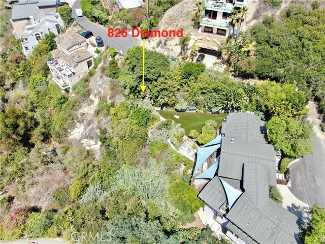 From PCH take Bluebird Canyon, right on Summit, right on Diamond to 826 Diamond Street on the right. |